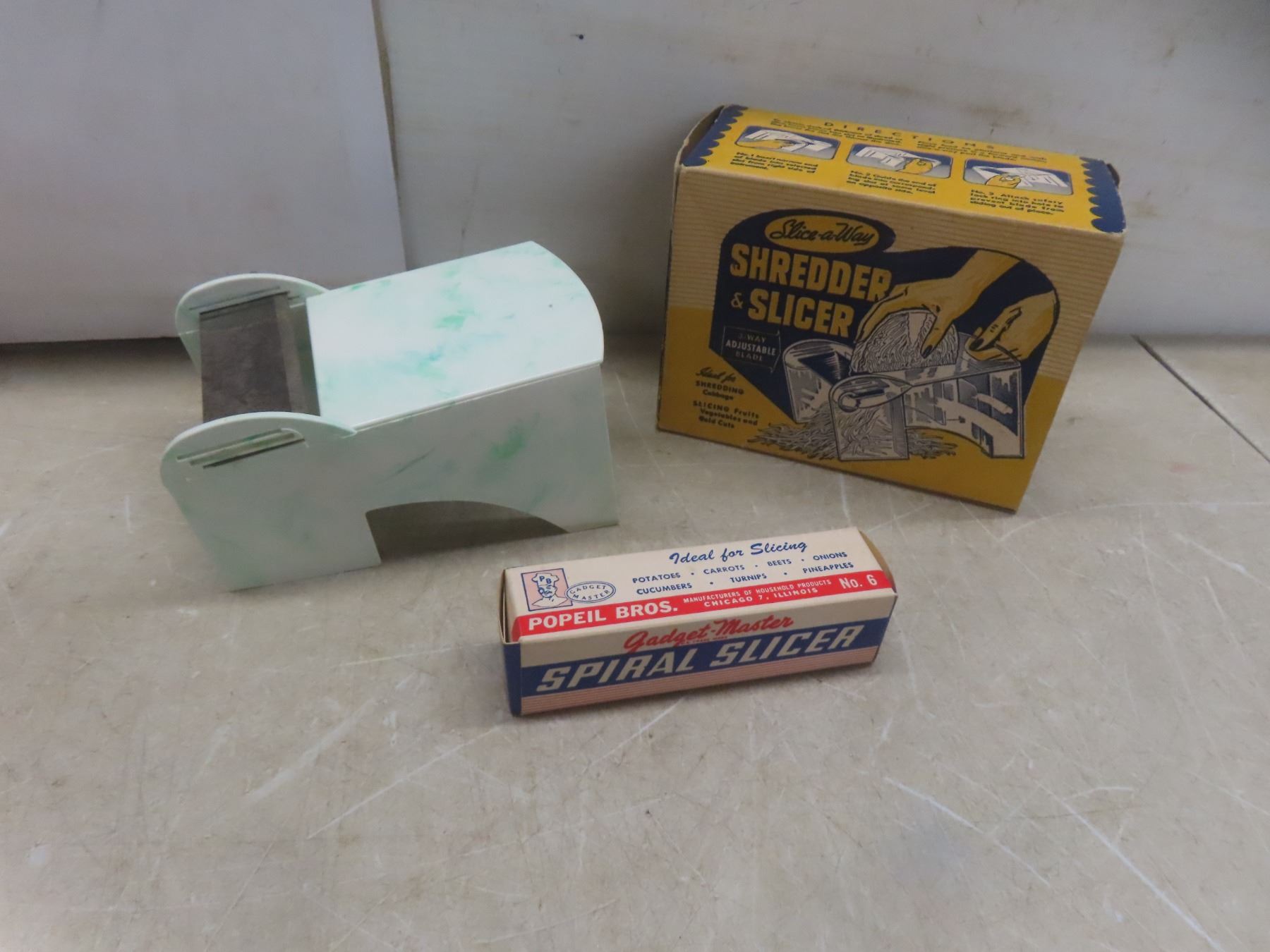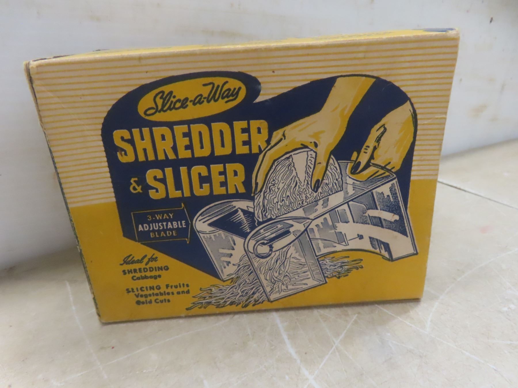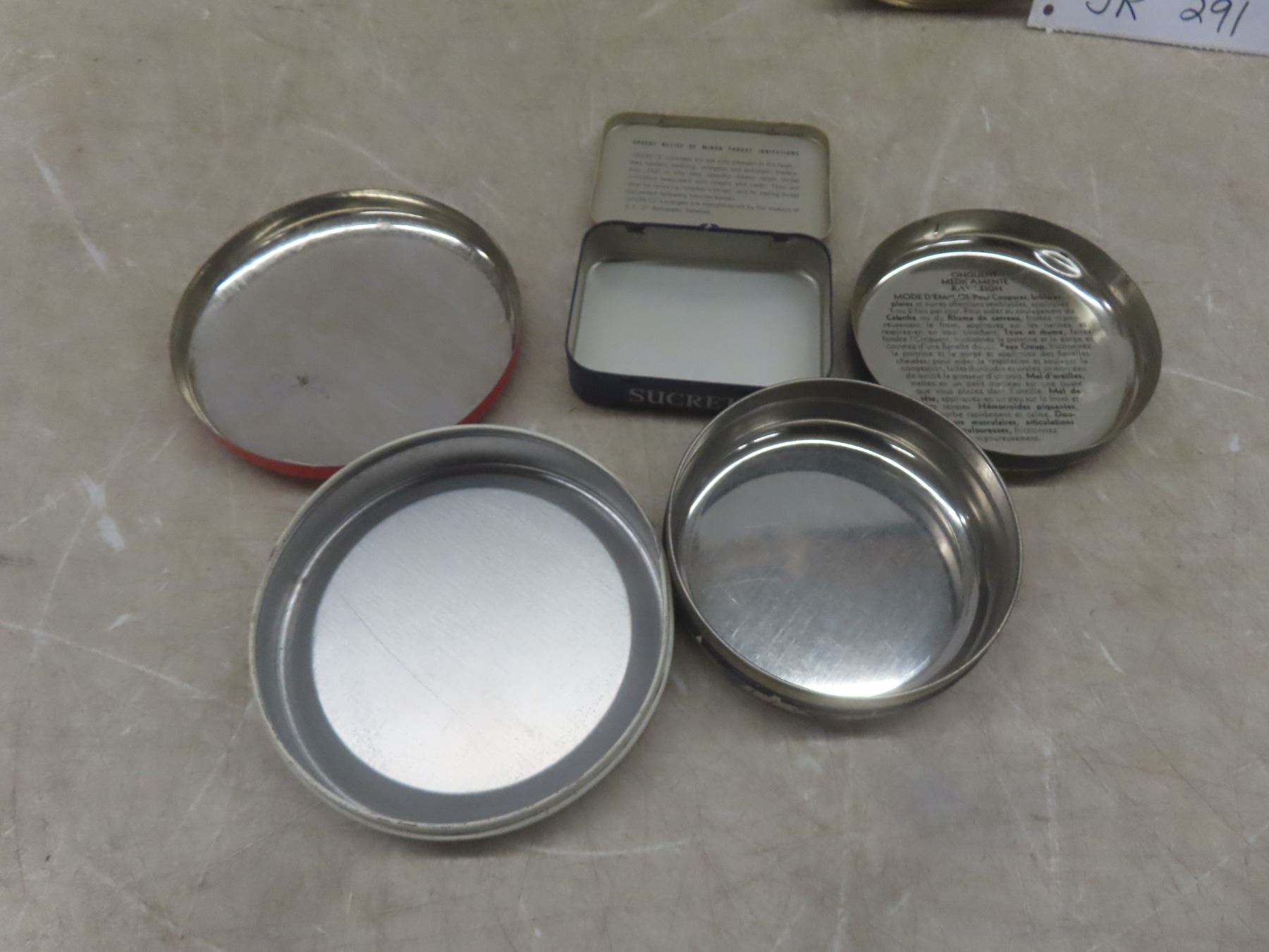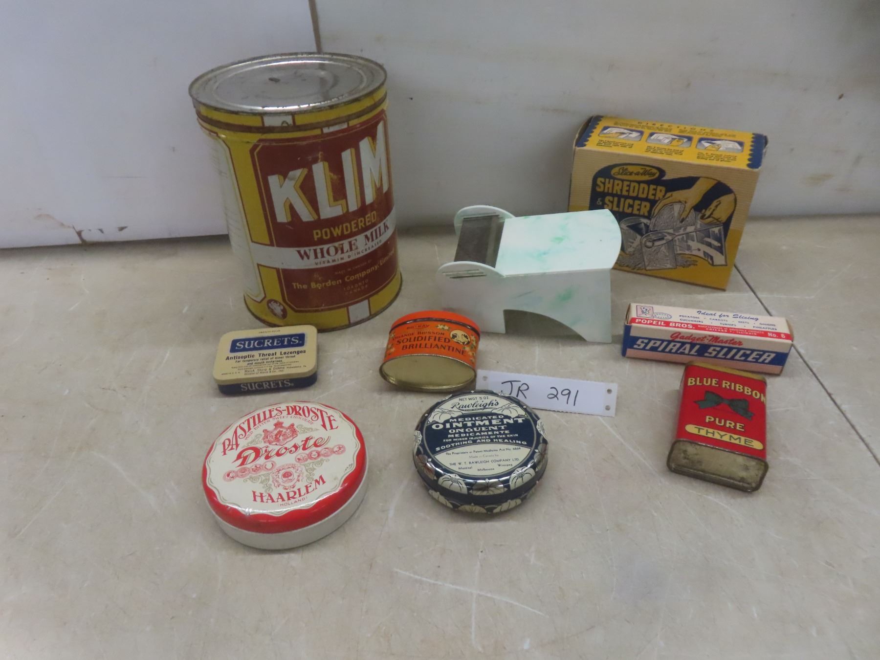 Lot 291 6 Antique Tins and Antique Slicer/Shredder in Original Box