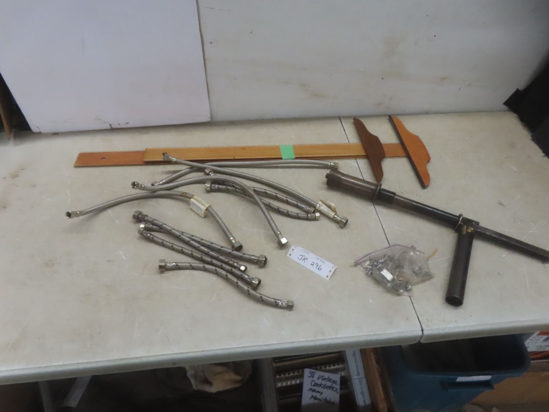Lot 296B Box of Plumbing Hoses; 2 Staedtler Drafting T-Squares; Heavy Steel Upholstering Tool