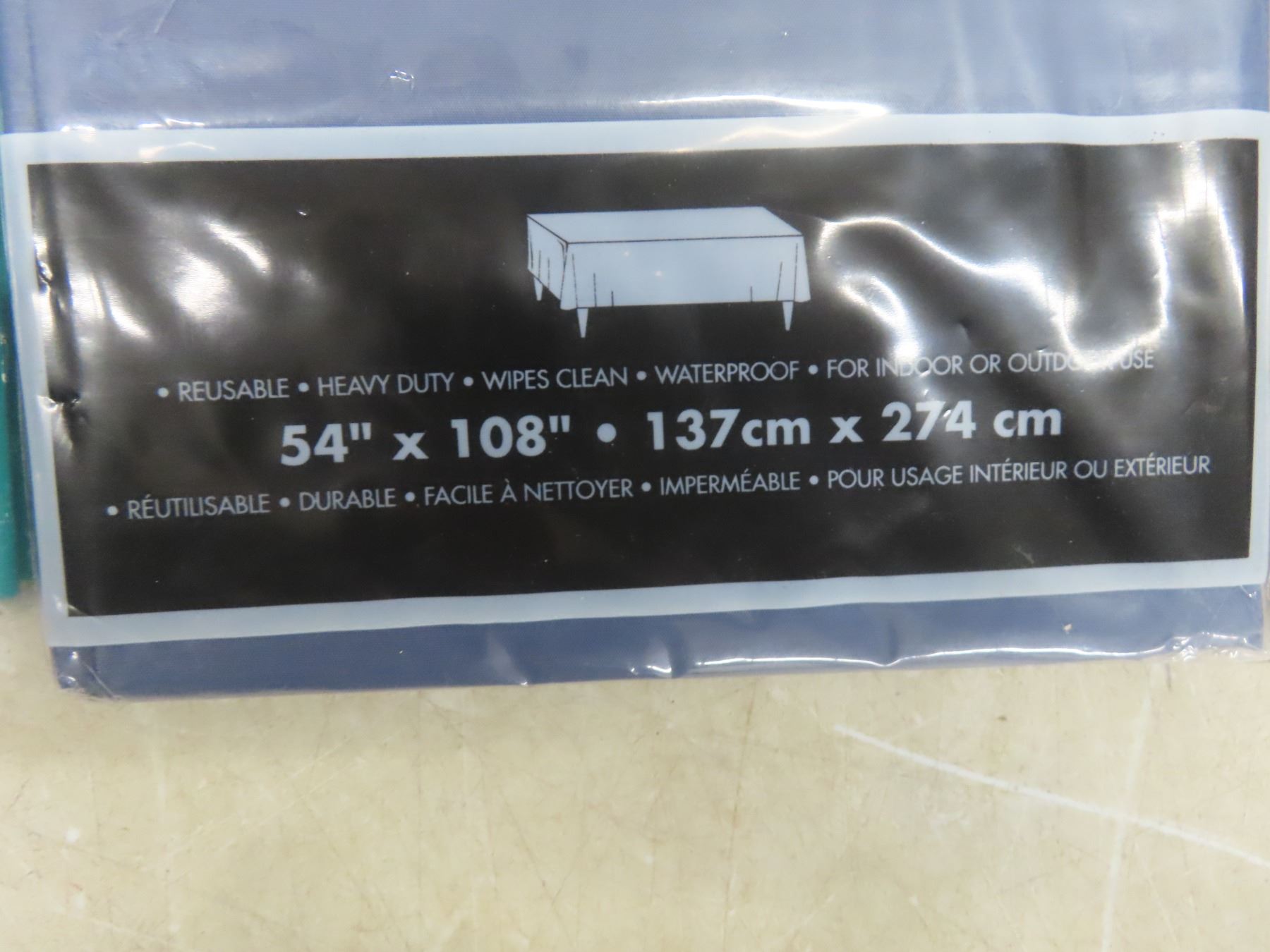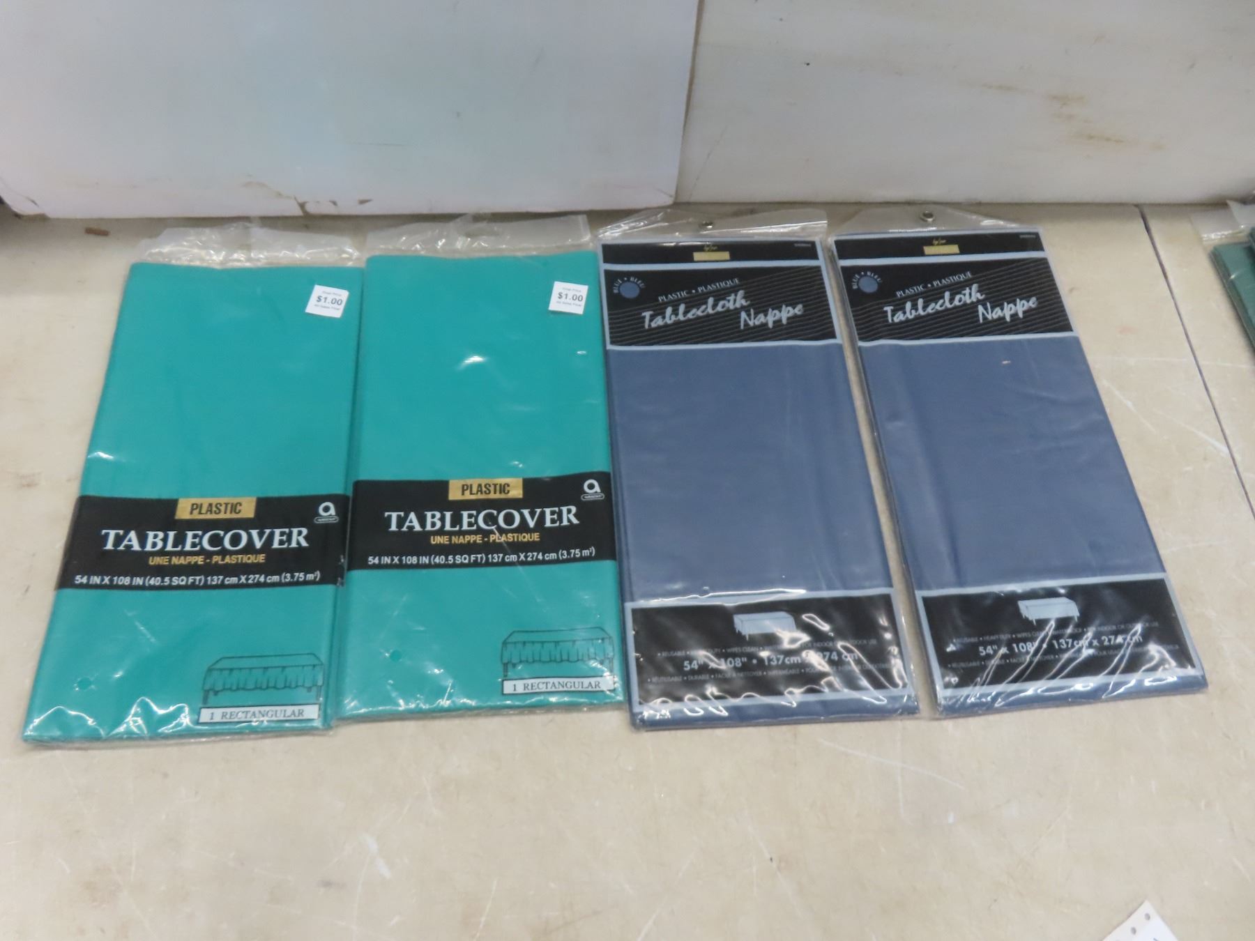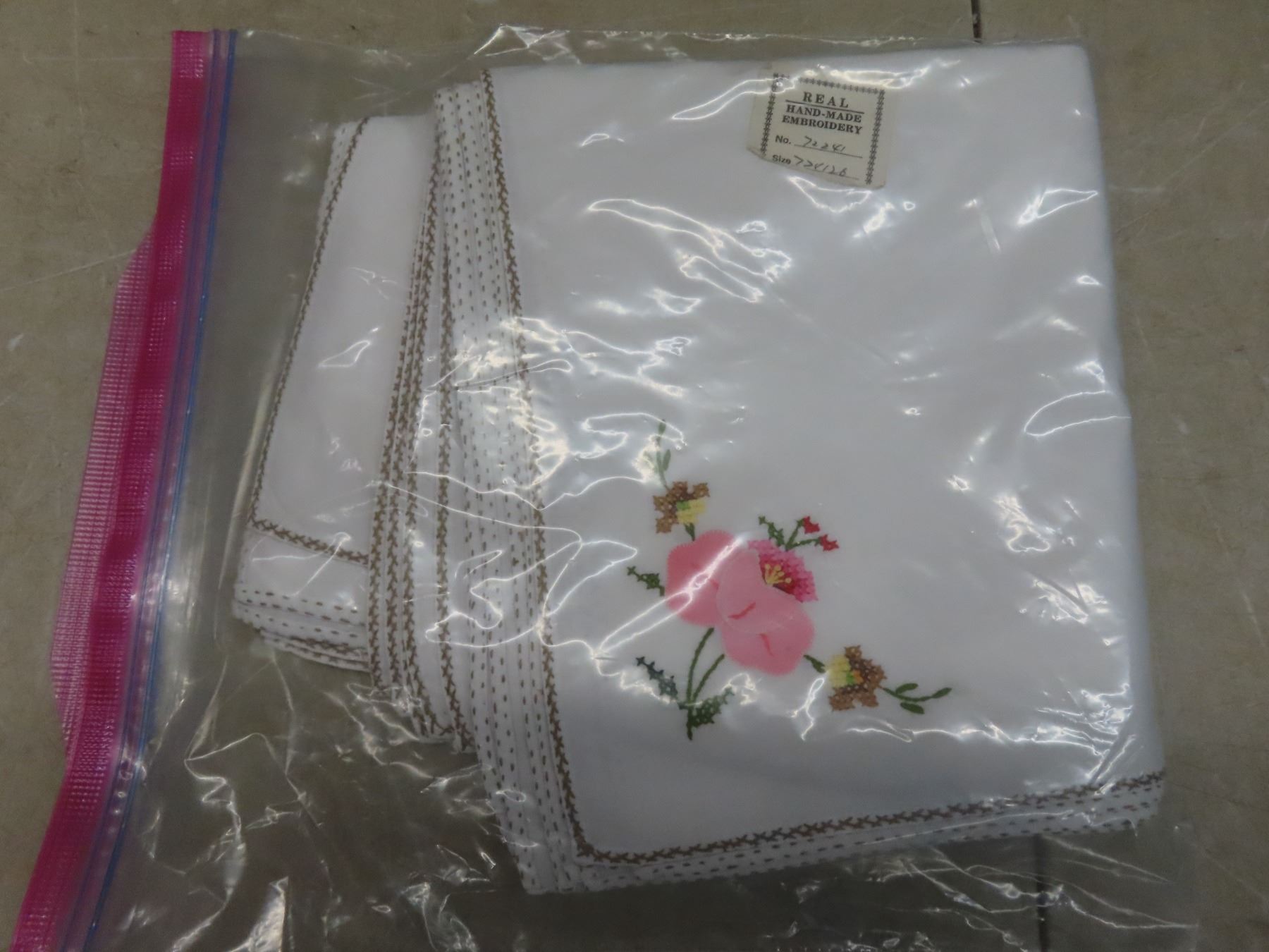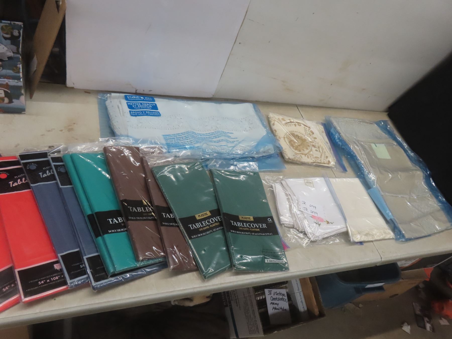 Lot 299 5 Antique Hand-Embroidered Table Cloths, Clean and Well-Maintained; 10 New Plastic Table Cloths