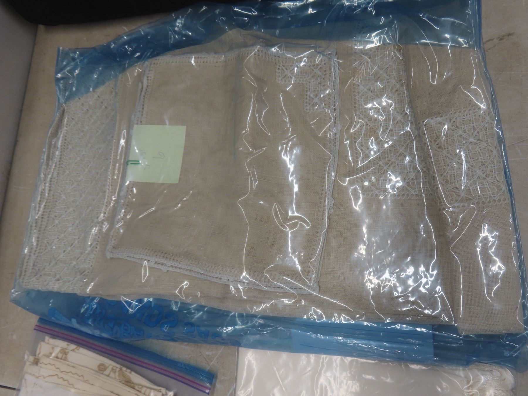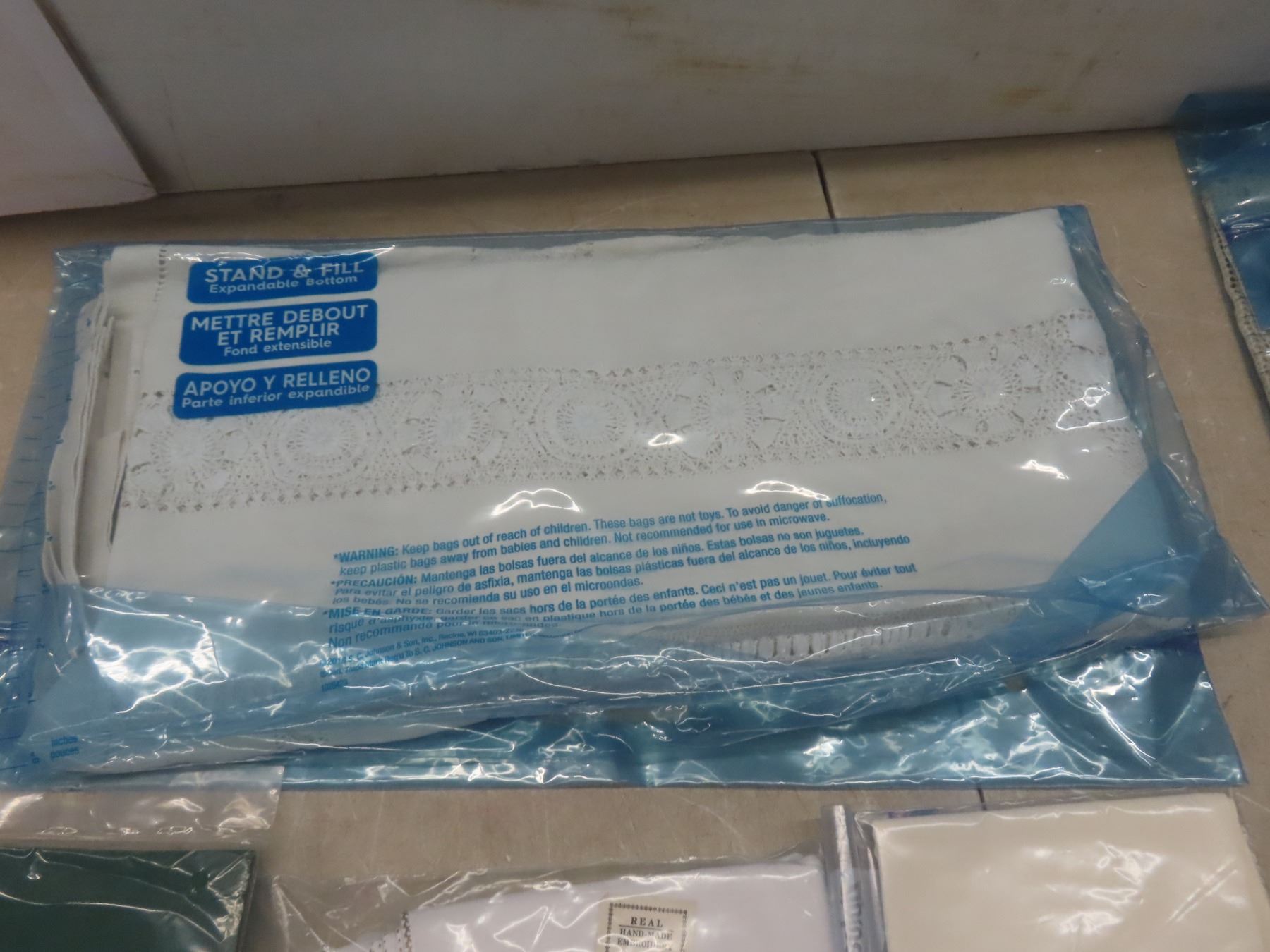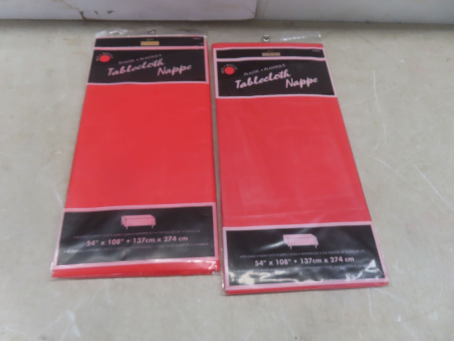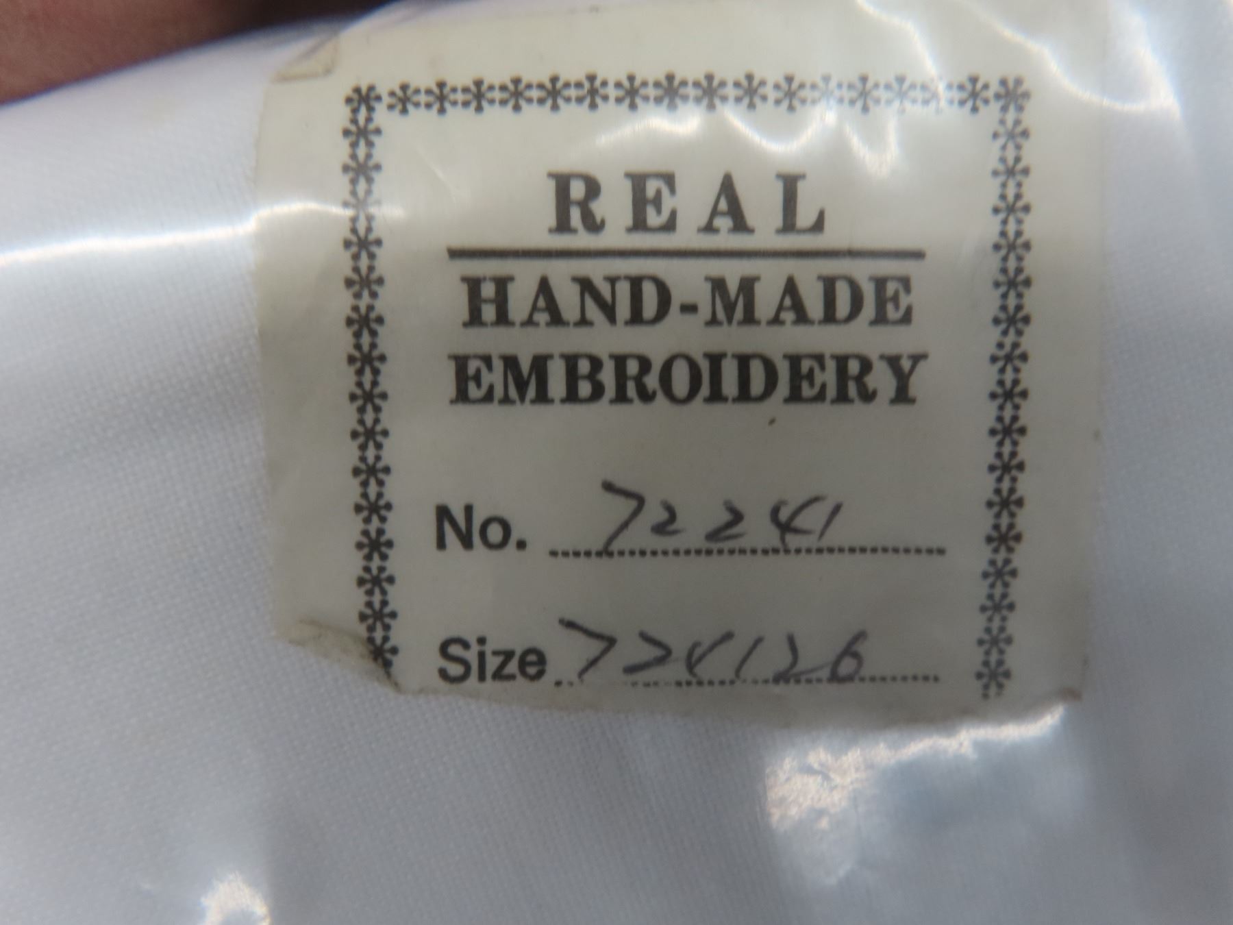 Lot 299 5 Antique Hand-Embroidered Table Cloths, Clean and Well-Maintained; 10 New Plastic Table Cloths