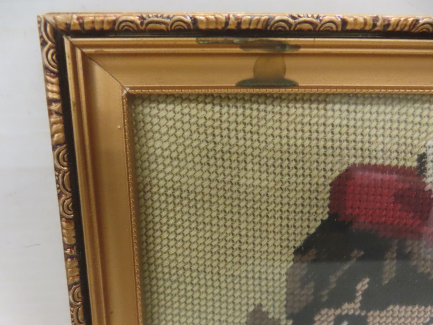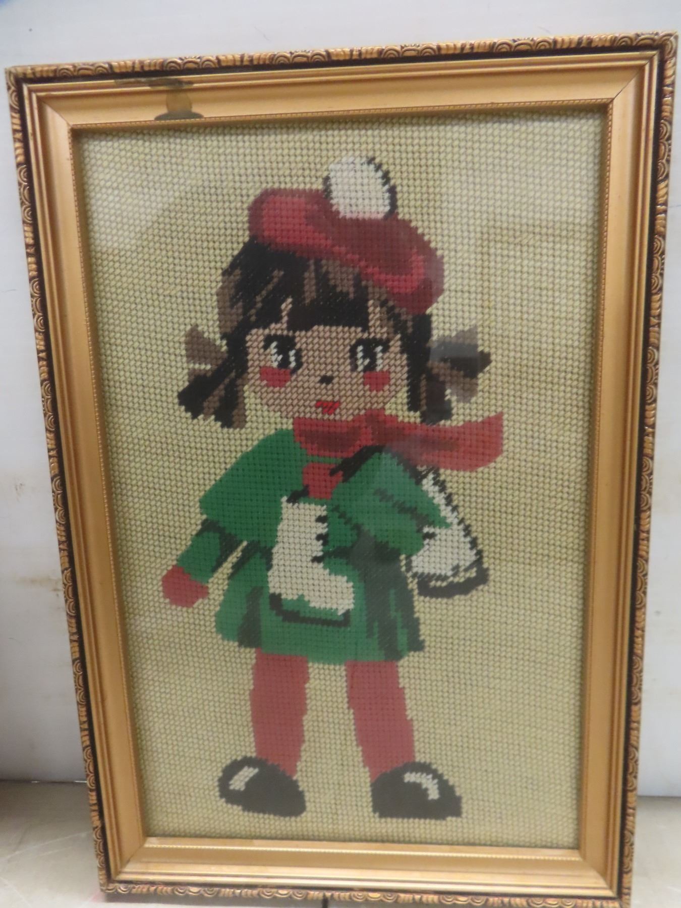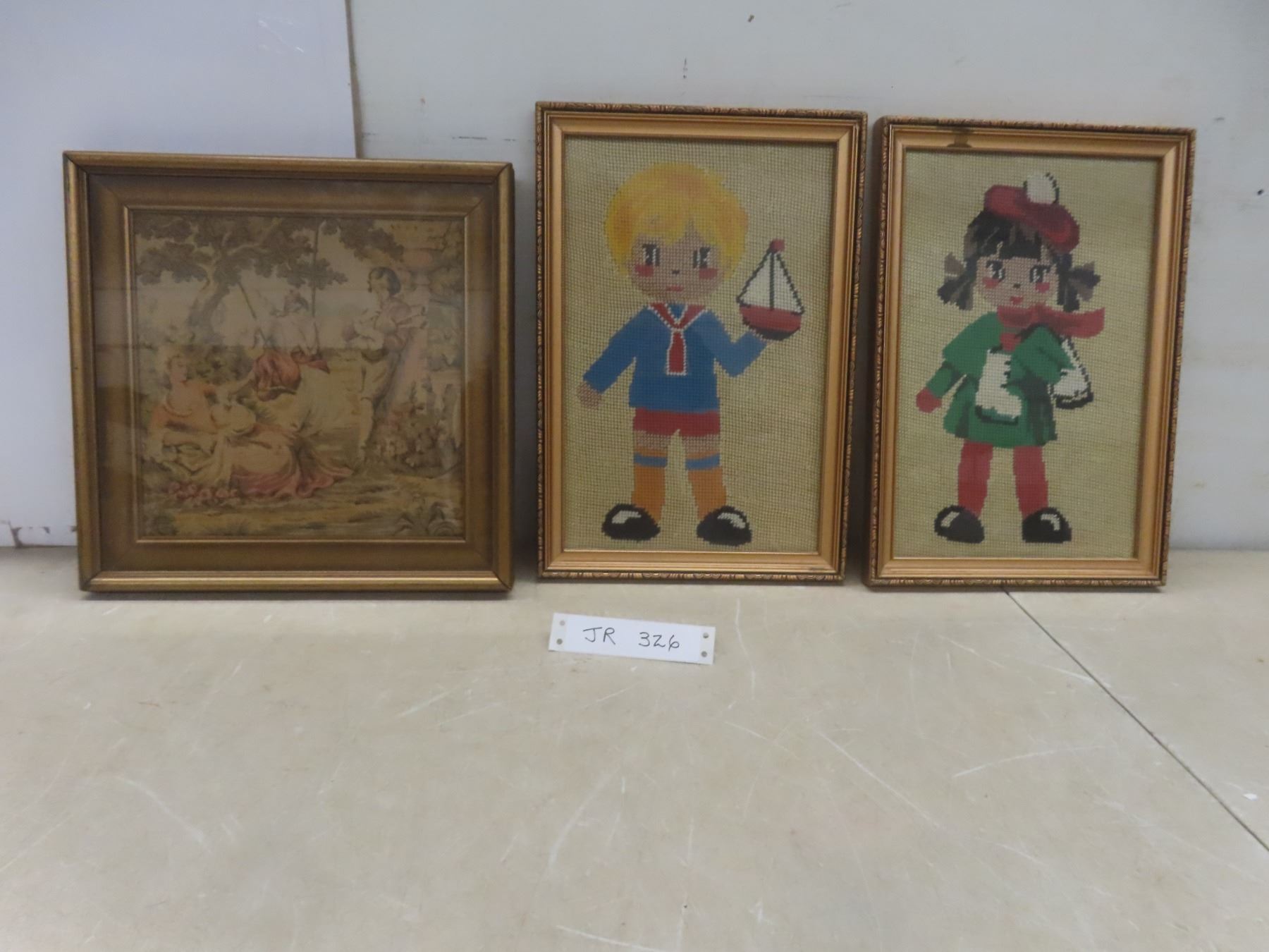 Lot 326 Framed Victorian Tapestry and Pair of Framed 1940s Needlepoints of Girl and Boy – Largest 1