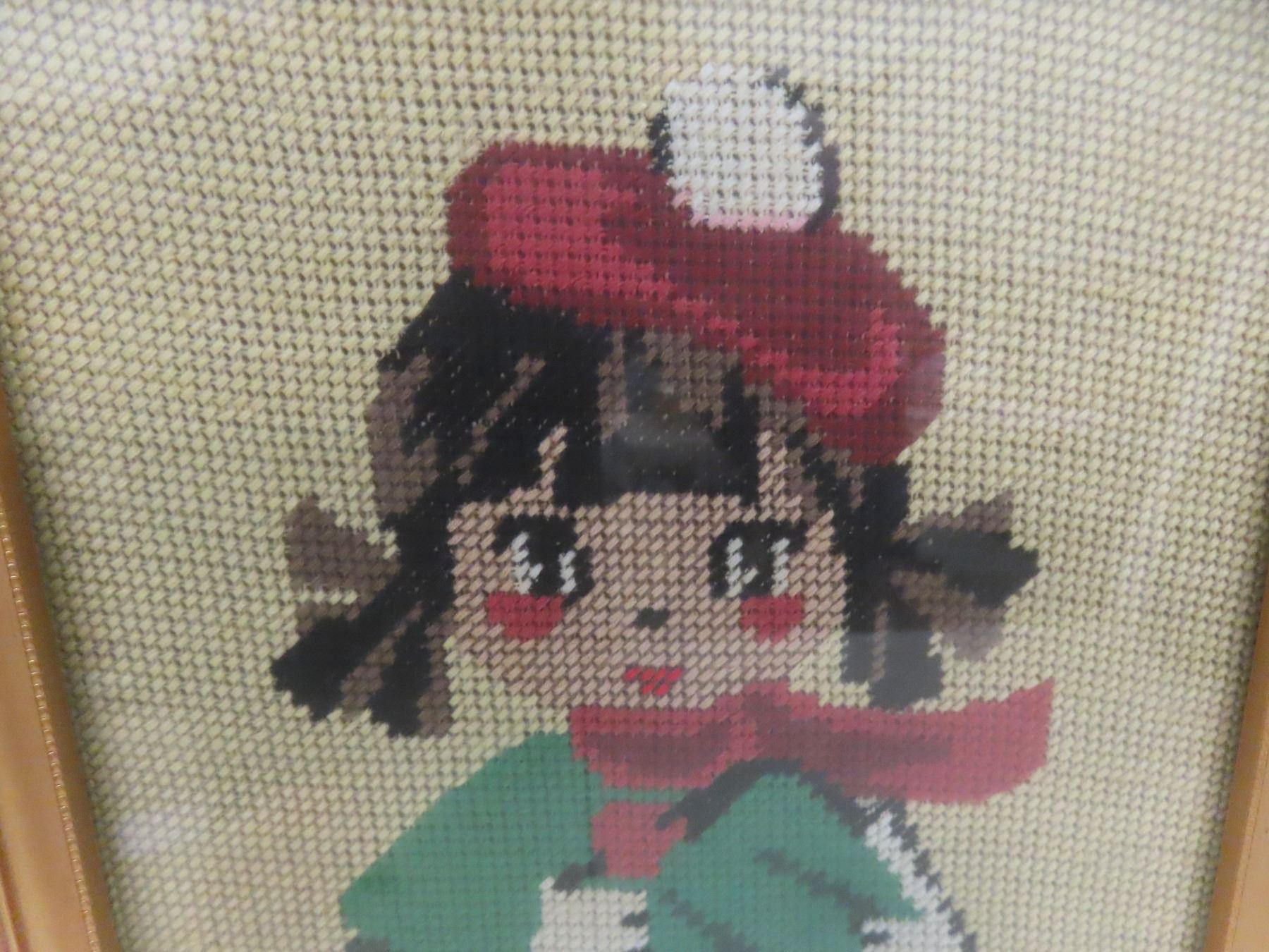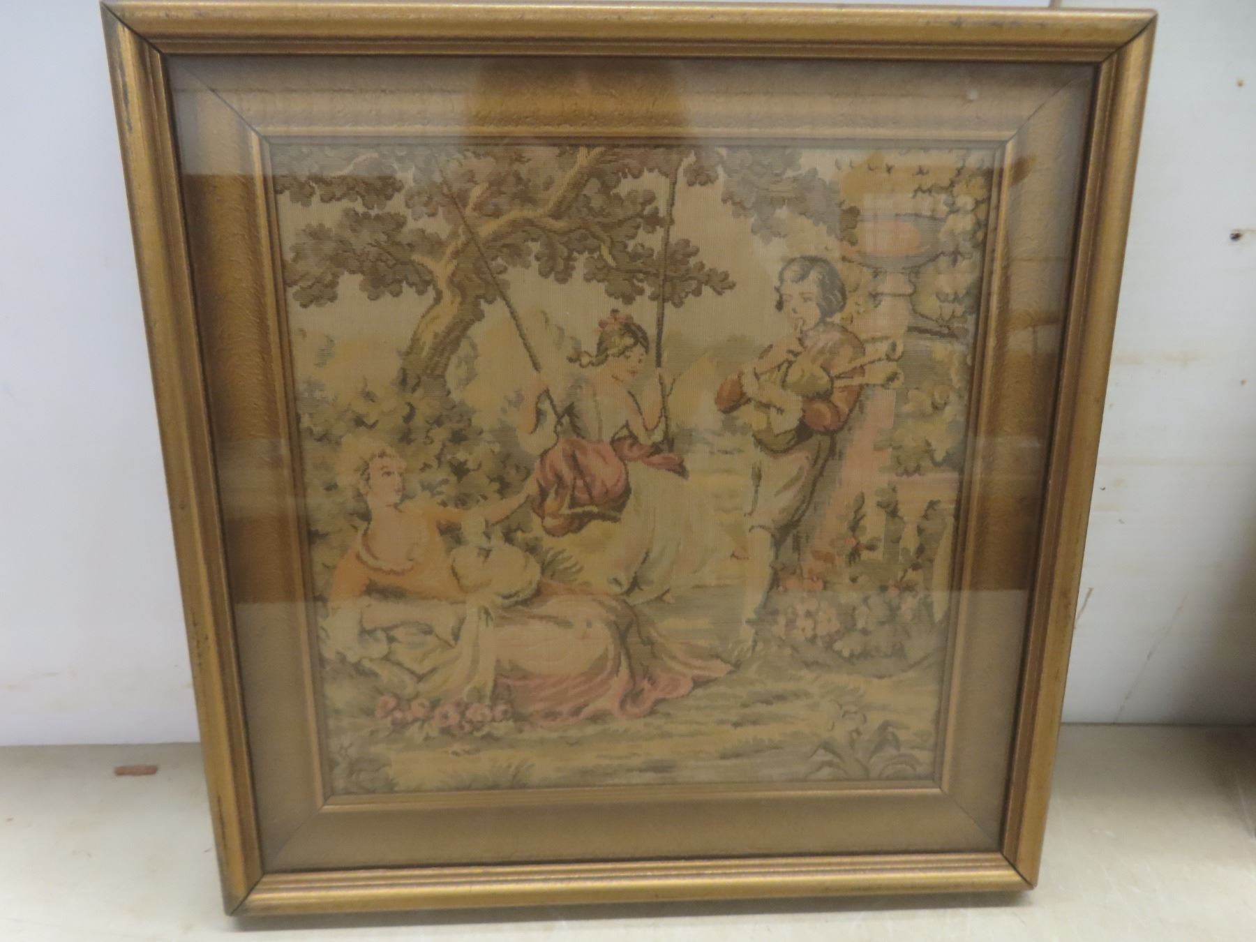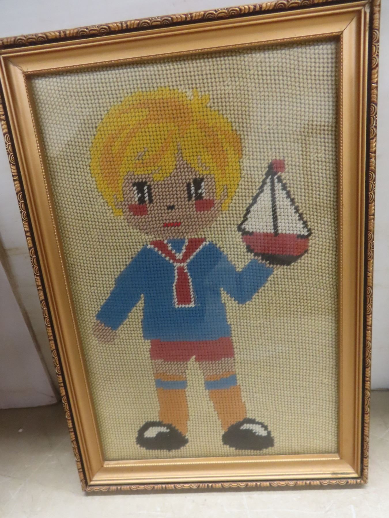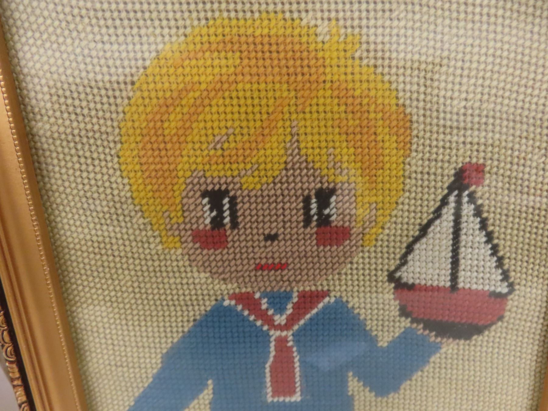 Lot 326 Framed Victorian Tapestry and Pair of Framed 1940s Needlepoints of Girl and Boy – Largest 1