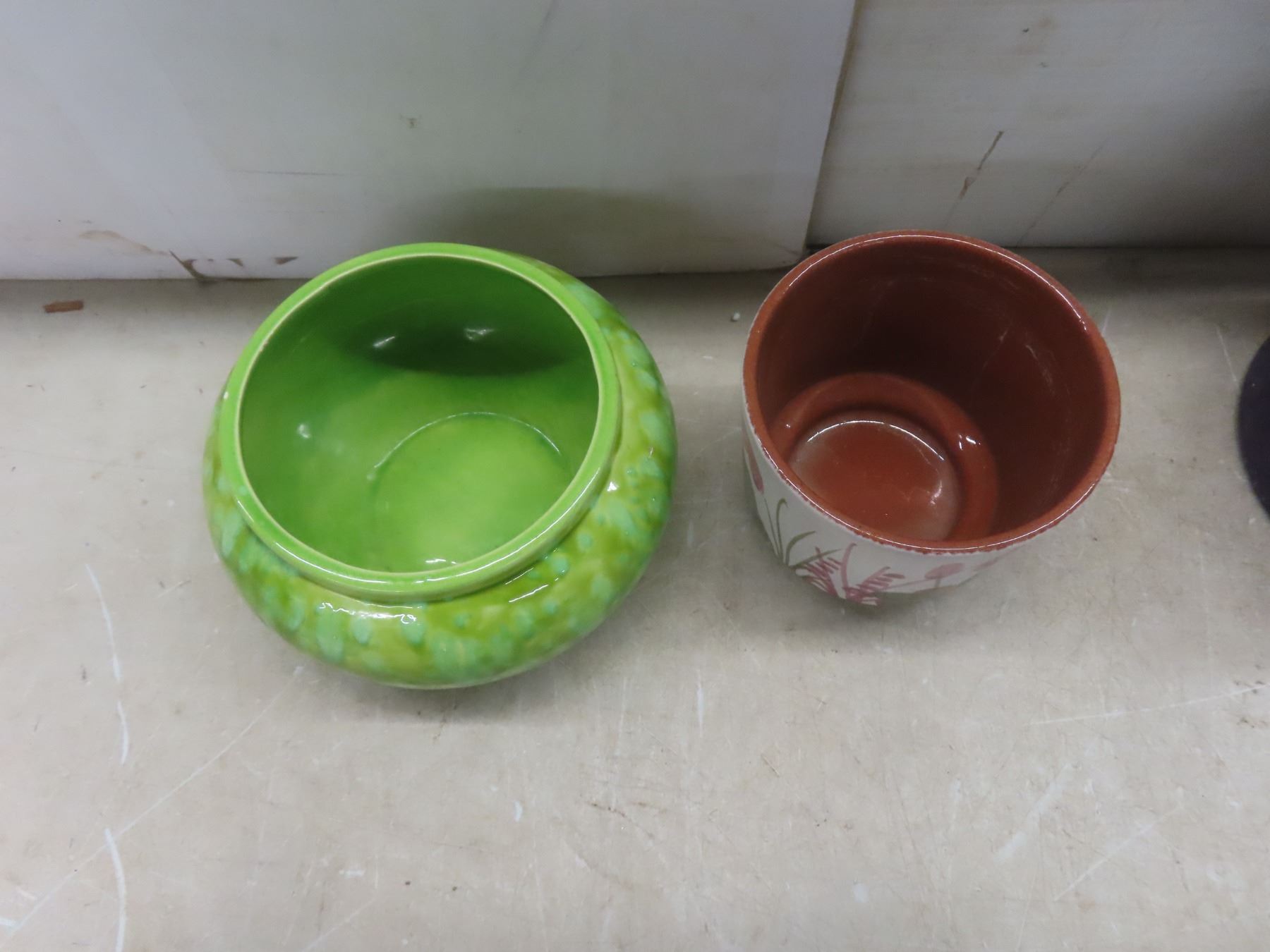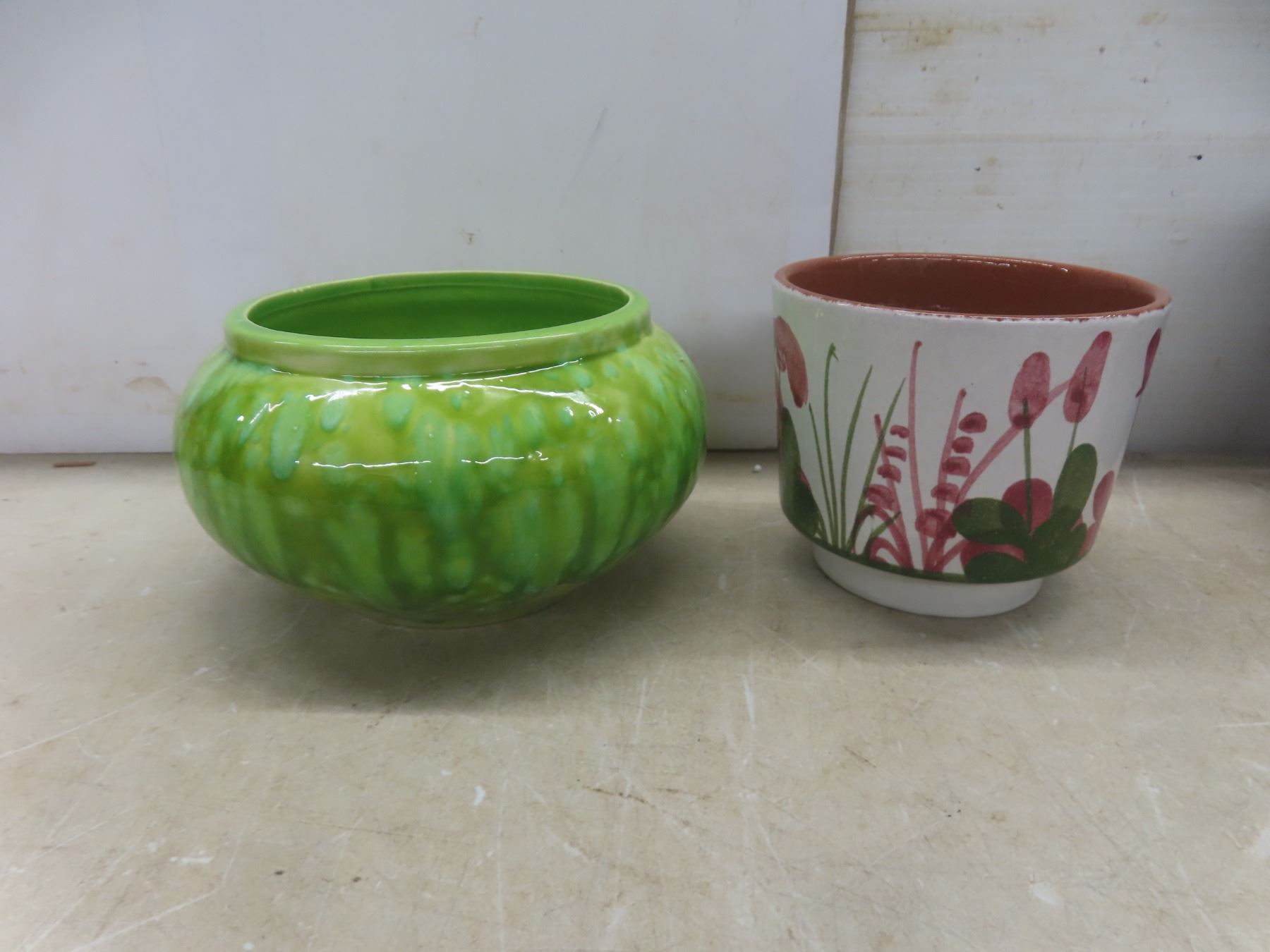 Lot 327 3 Vintage Plant Pots Made in West Germany and Canada and 2 Small Heavy Plant Stands