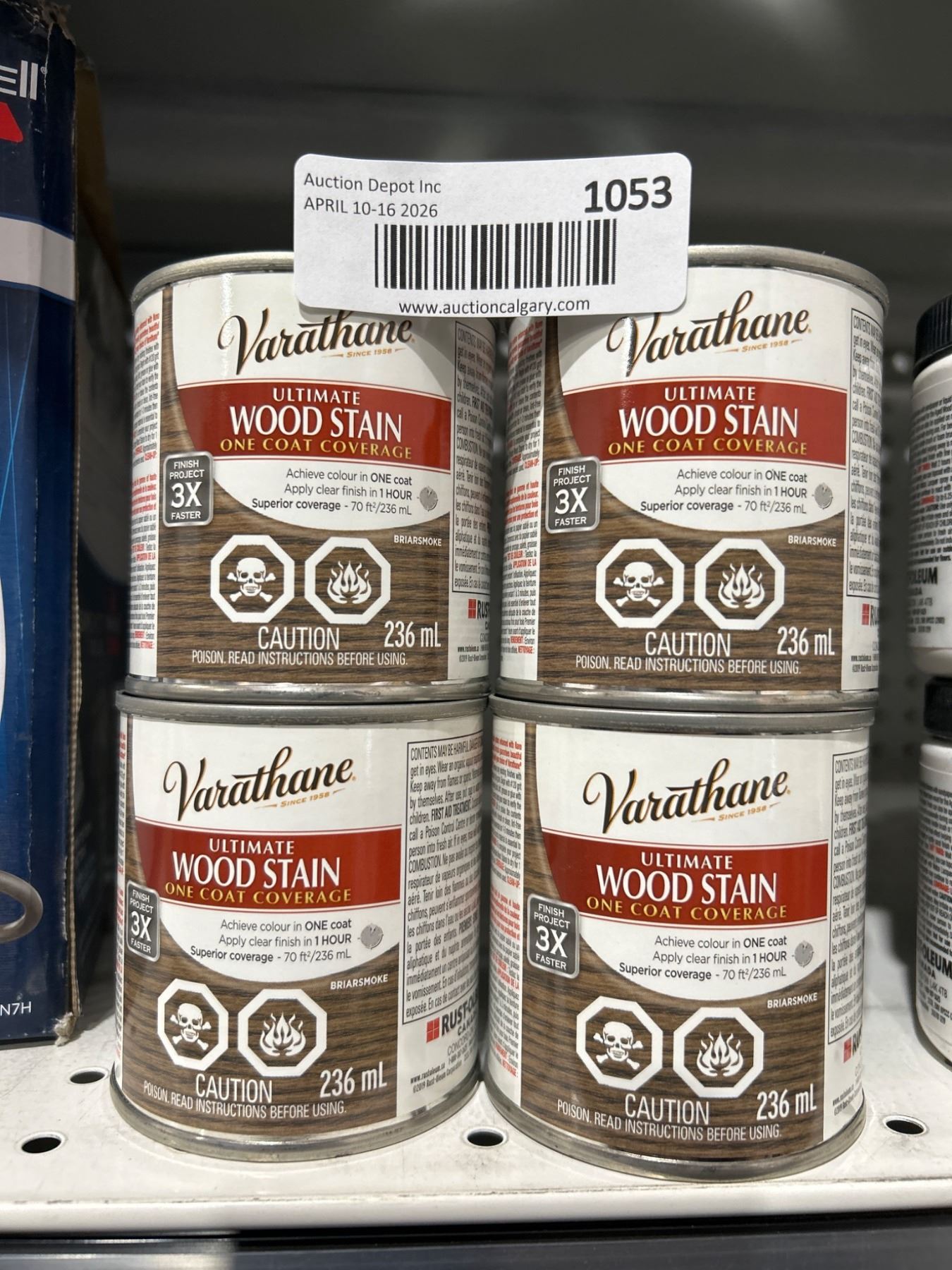 Lot 1053 Lot of 4 - Varathane Ultimate Oil-Based Interior Wood Stain in Briarsmoke, 236 mL