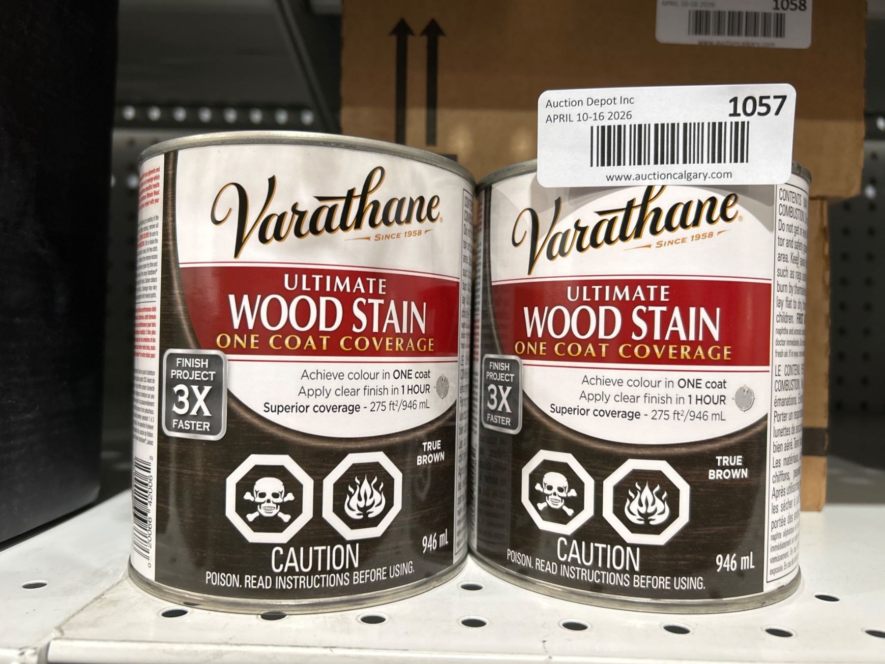 Lot 1058 Lot of 2 Varathane Ultimate Wood Stain – One Coat Coverage, True Brown â[x=#8364