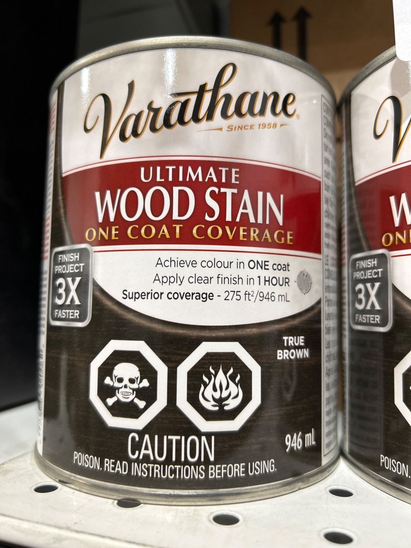 Lot of 2 Varathane Ultimate Wood Stain – One Coat Coverage, True Brown – 946 mL Cans