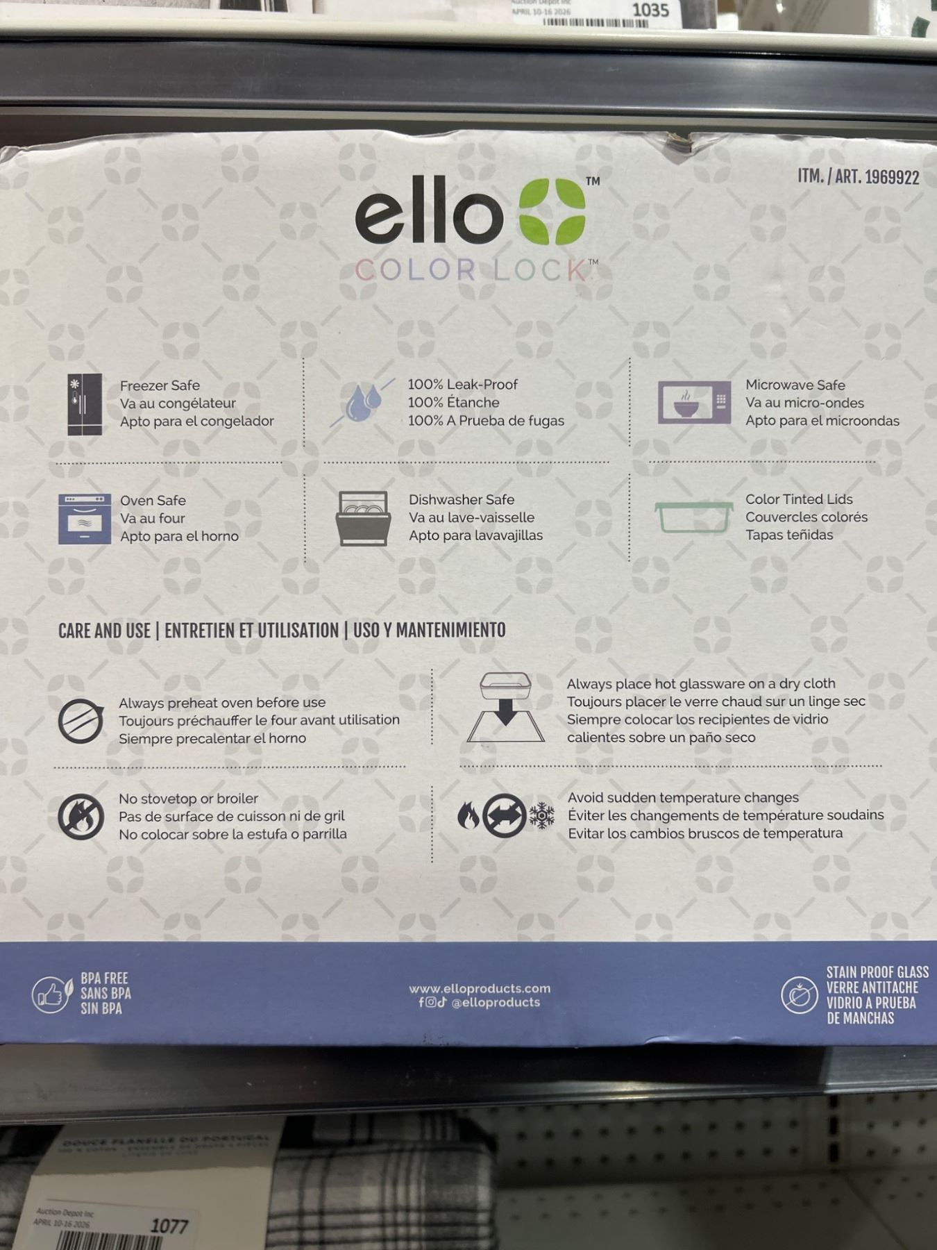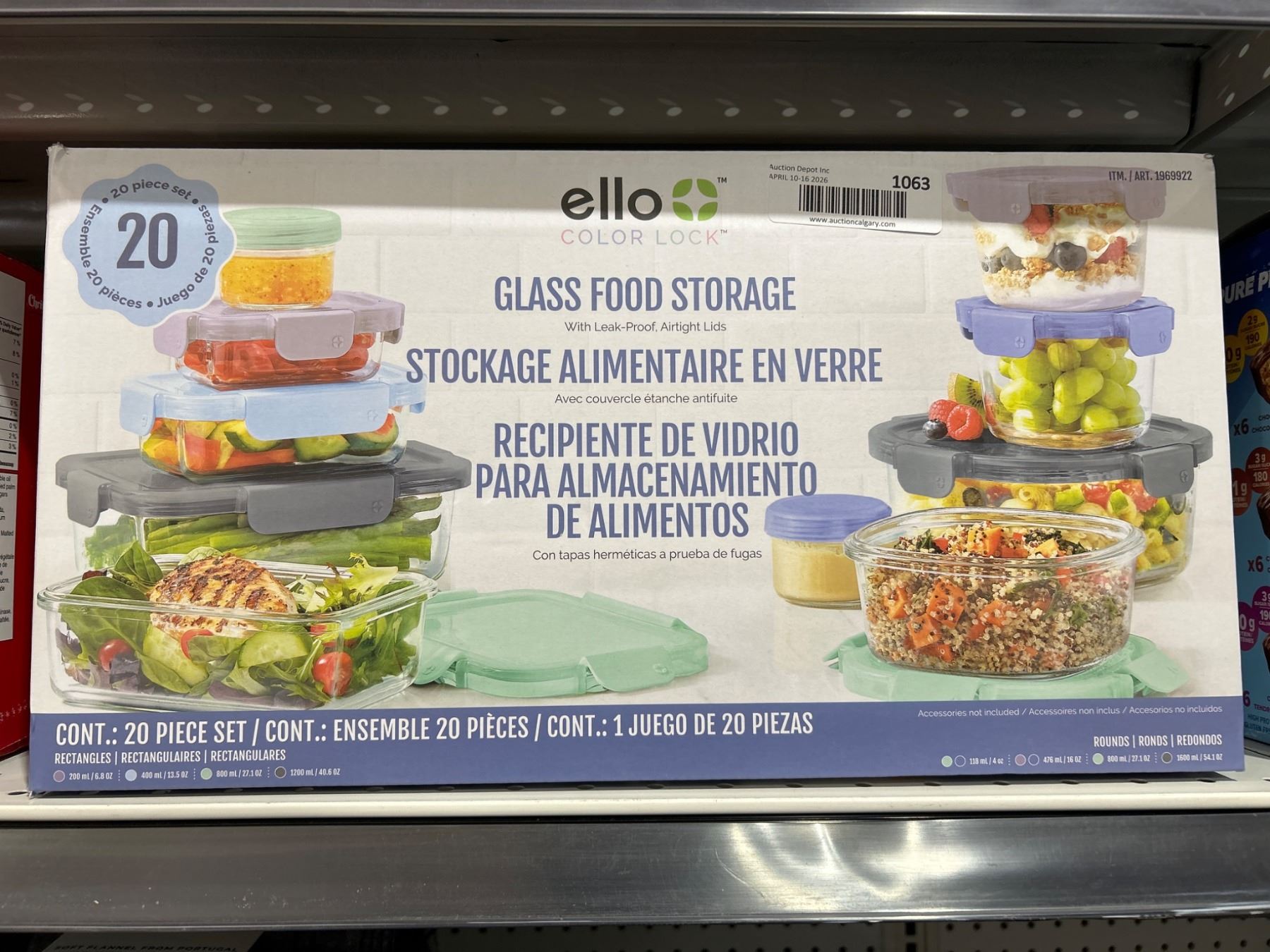 Lot 1063 Ello Glass Food Storage 20-Piece Set, Color Lock