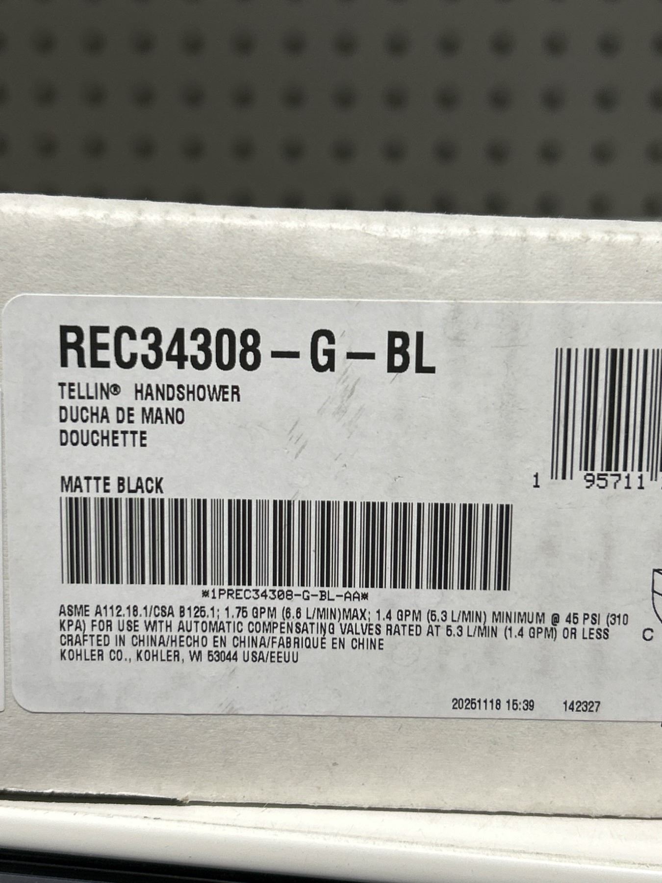 Lot 1079 Kohler REC34308-G-BL Tellin Handshower in Matte Black