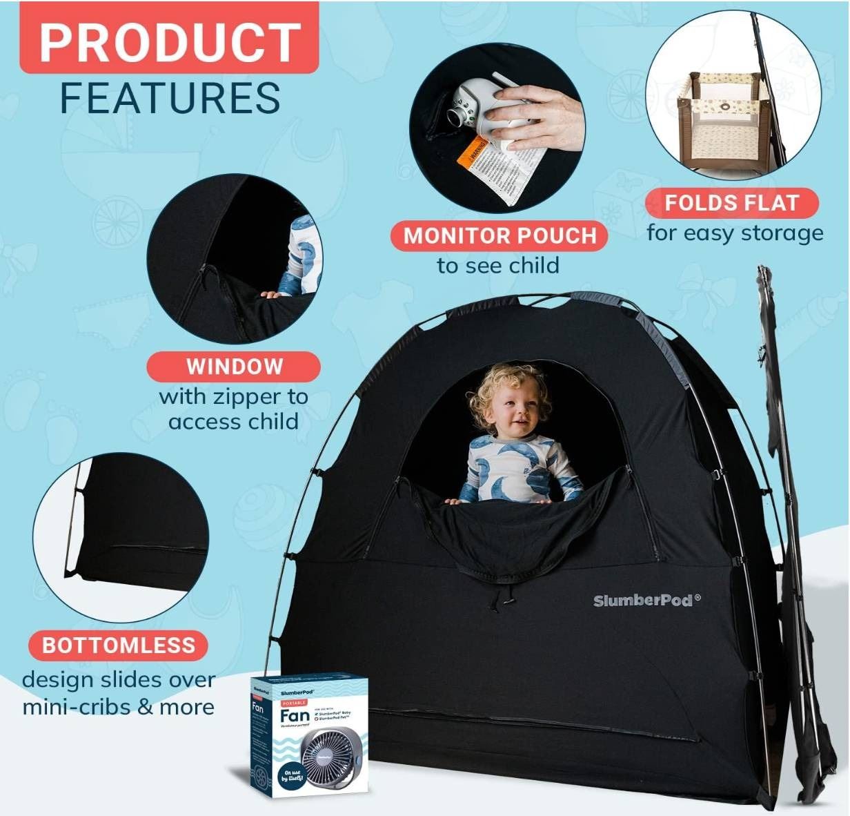 Lot 1081 SlumberPod and Fan Combo 2.0, Portable Privacy Pod Blackout Canopy Crib Cover, Sleeping Space for Ag