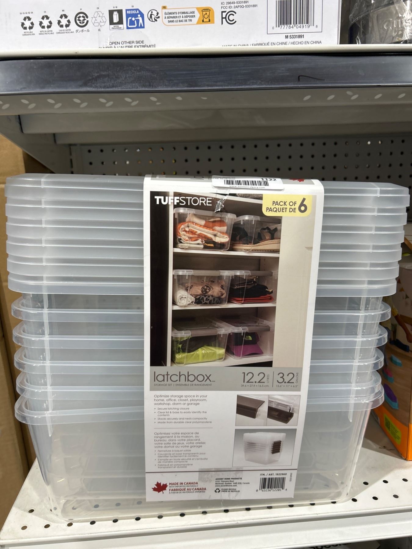 Lot 1122 Tufstore Latchbox Storage Bins 12.2 x 13.2 in - Pack of 6