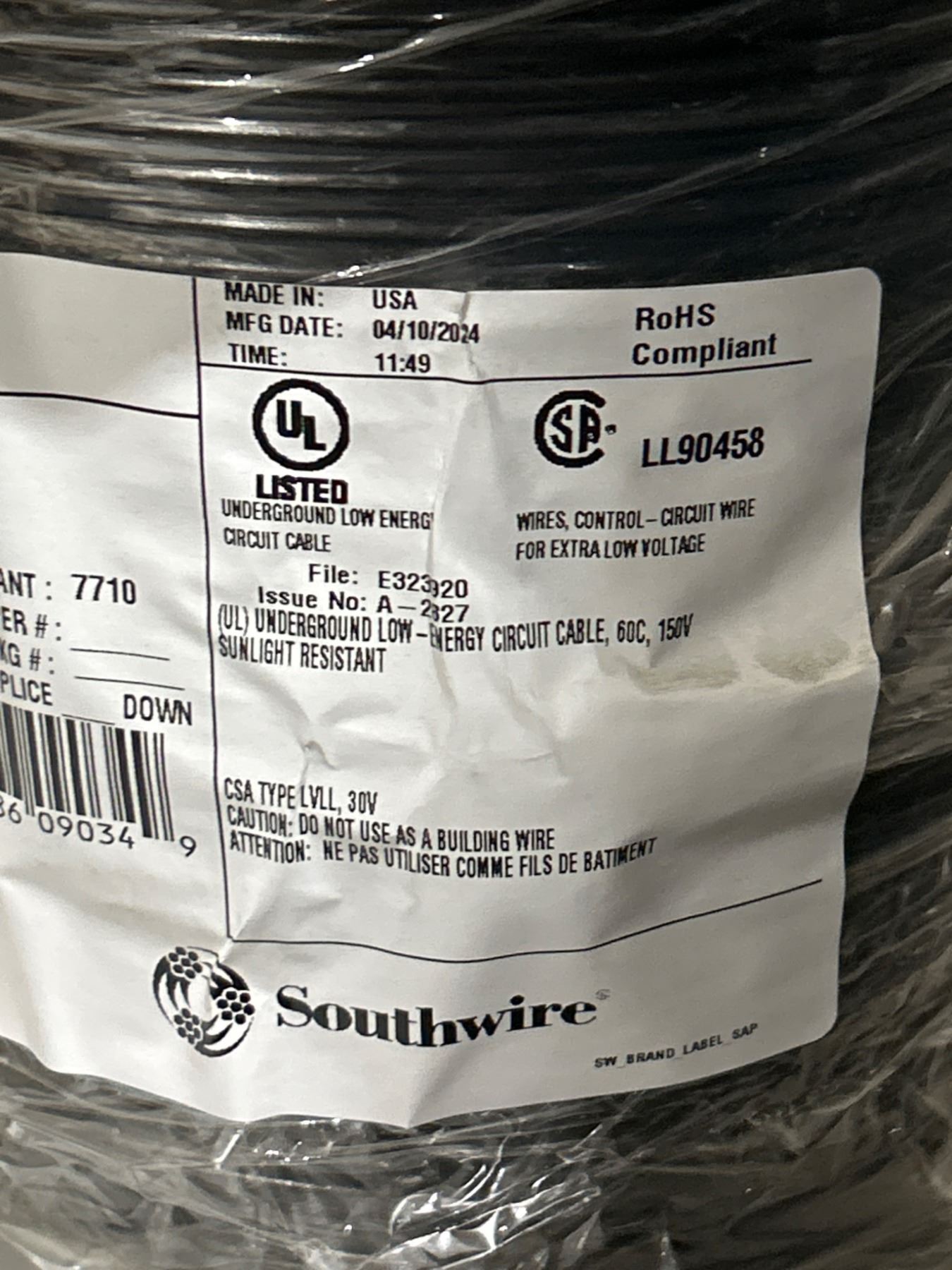 Lot 1133 Southwire Landscape Lighting Cable 12/2 Stranded Copper, 246 Ft