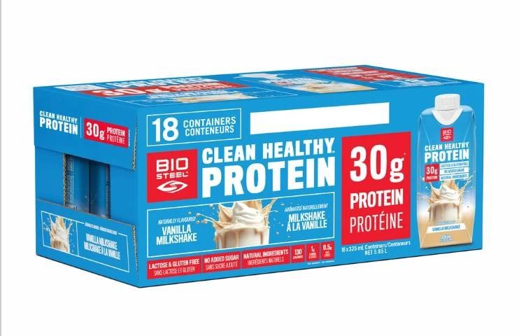Lot 1160 BioSteel Clean Healthy Protein, Vanilla Milkshake, 18 x 325ml Containers