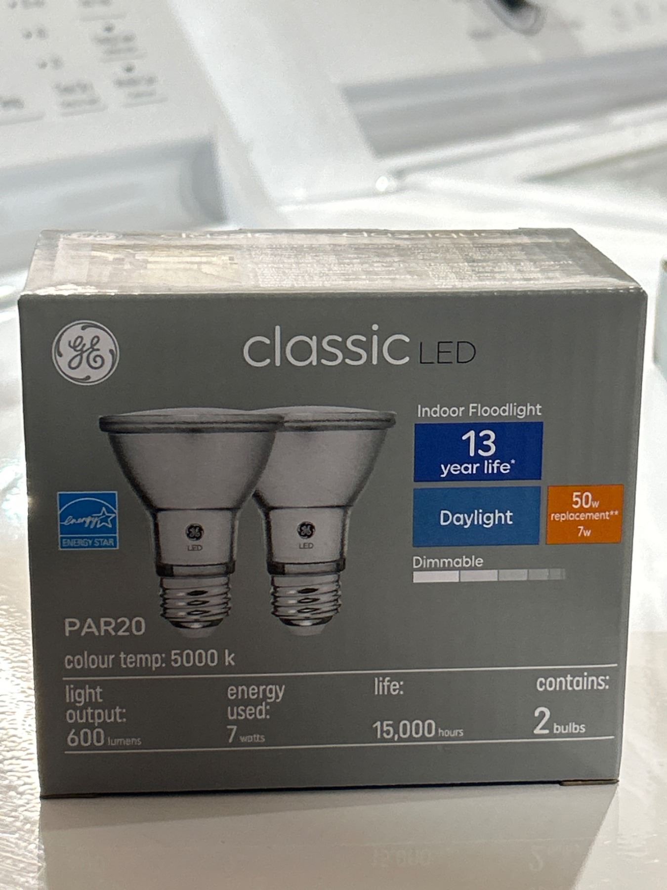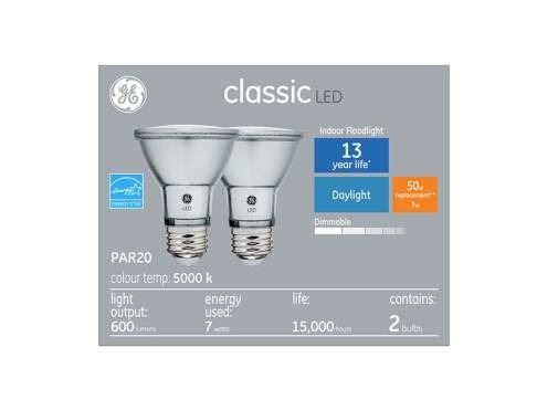 Lot of 4 - GE Classic LED PAR20 Bulbs, 5000K, 7W, Dimmable, Set of 2, 600 Lumens