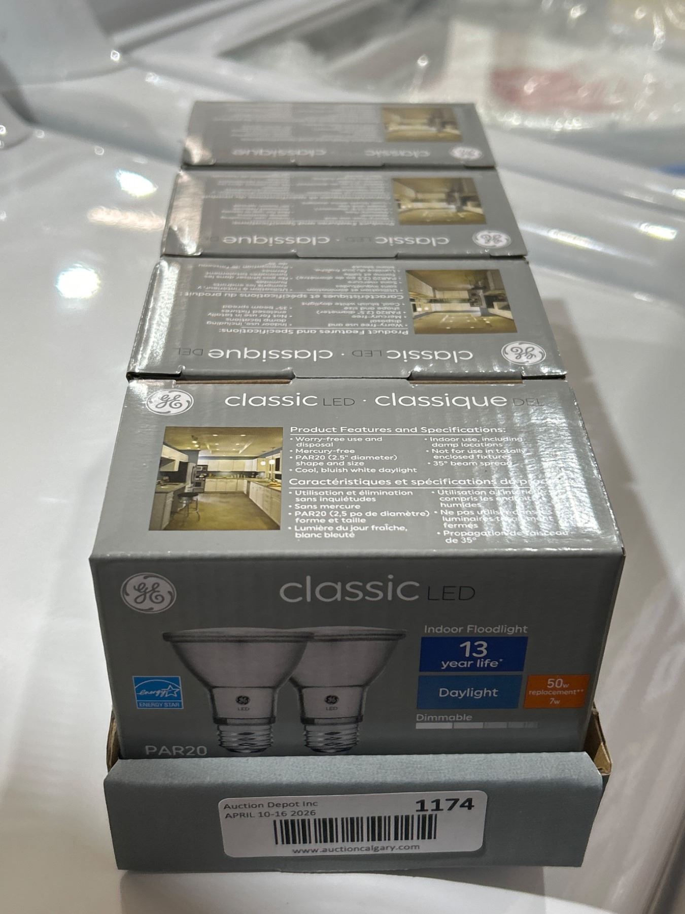 Lot 1175 Lot of 4 - GE Classic LED PAR20 Bulbs, 5000K, 7W, Dimmable, Set of 2, 600 Lumens