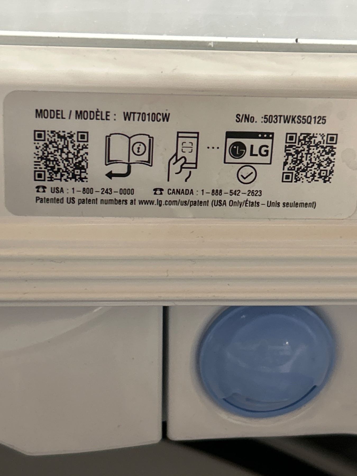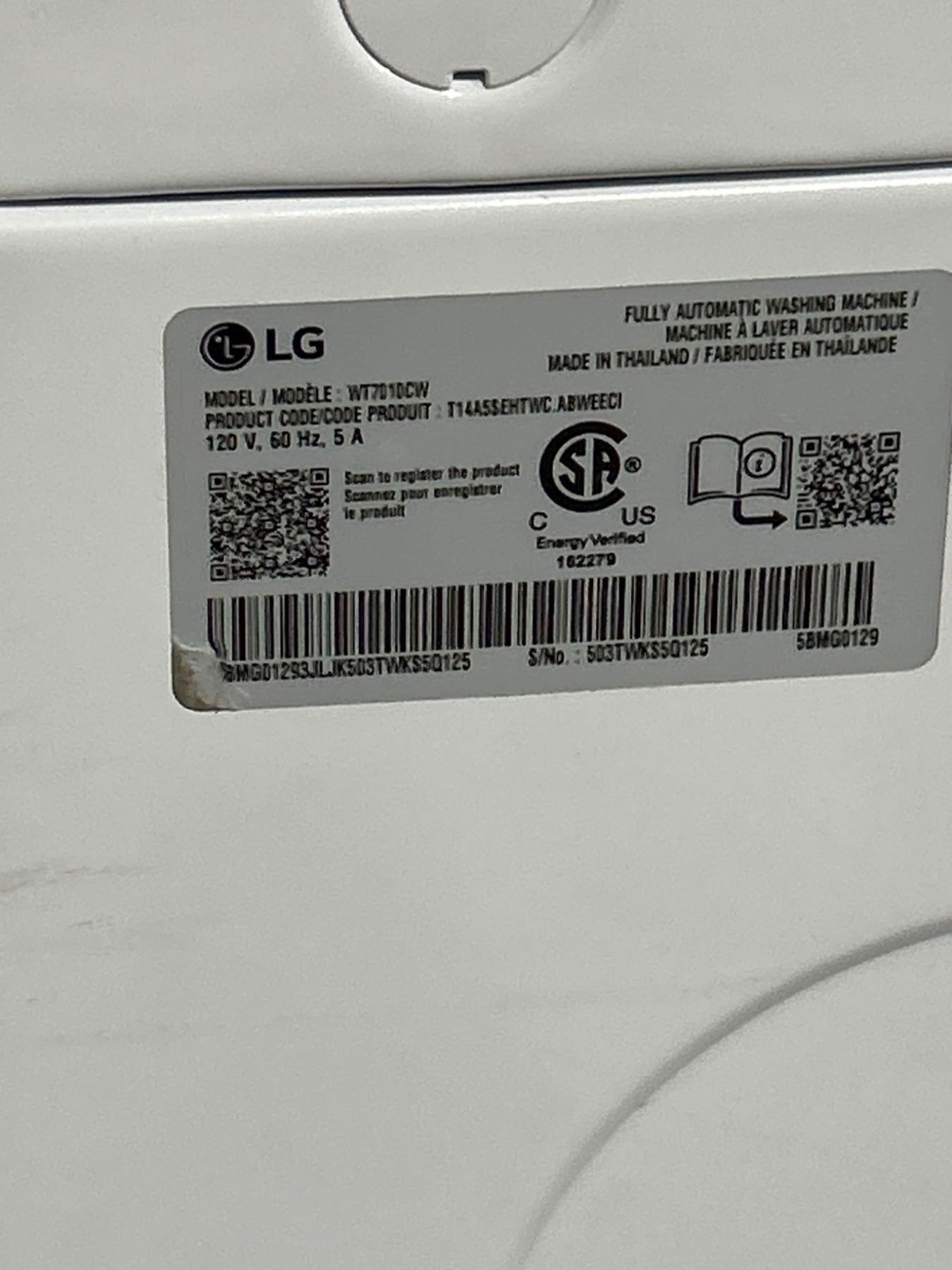 Lot 1179 LG WT7100CW 4.5 cu. ft. High Efficiency Top Load Washer, White