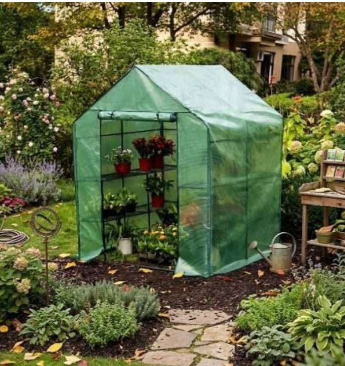Walk-In Greenhouse 56in x 56in x 77in with PE Cover and Zipper Front Roll-Up Access