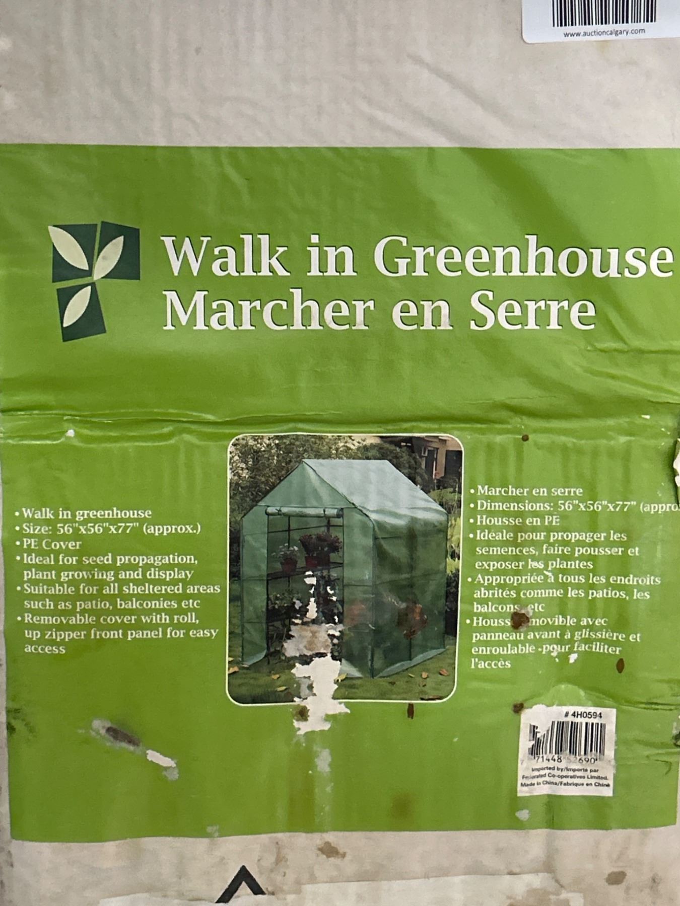 Lot 1183 Walk-In Greenhouse 56in x 56in x 77in with PE Cover and Zipper Front Roll-Up Access