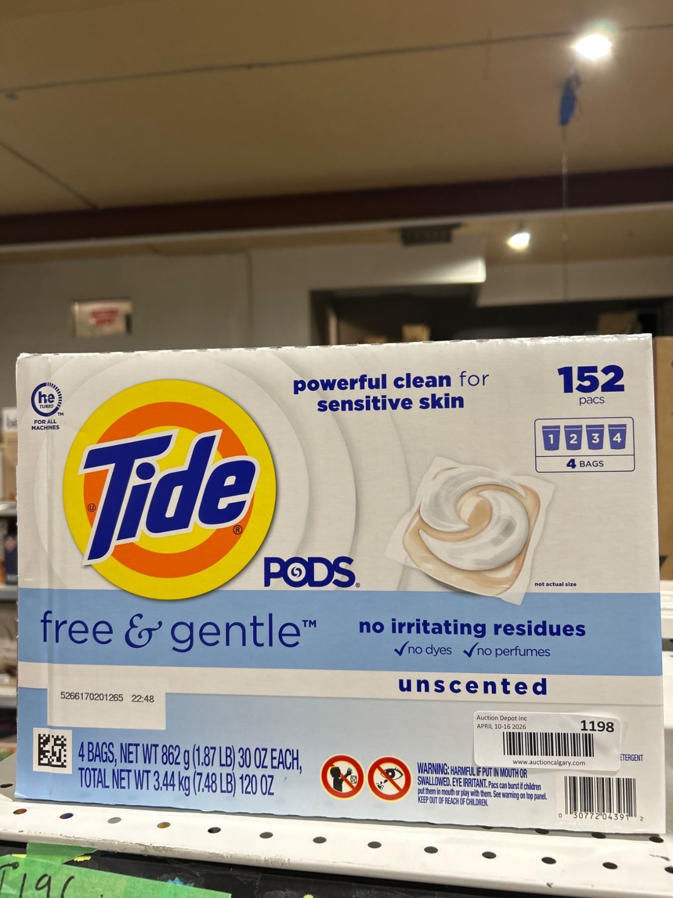 Lot 1198 Tide Pods Free and Gentle Unscented Laundry Detergent, 152 Count