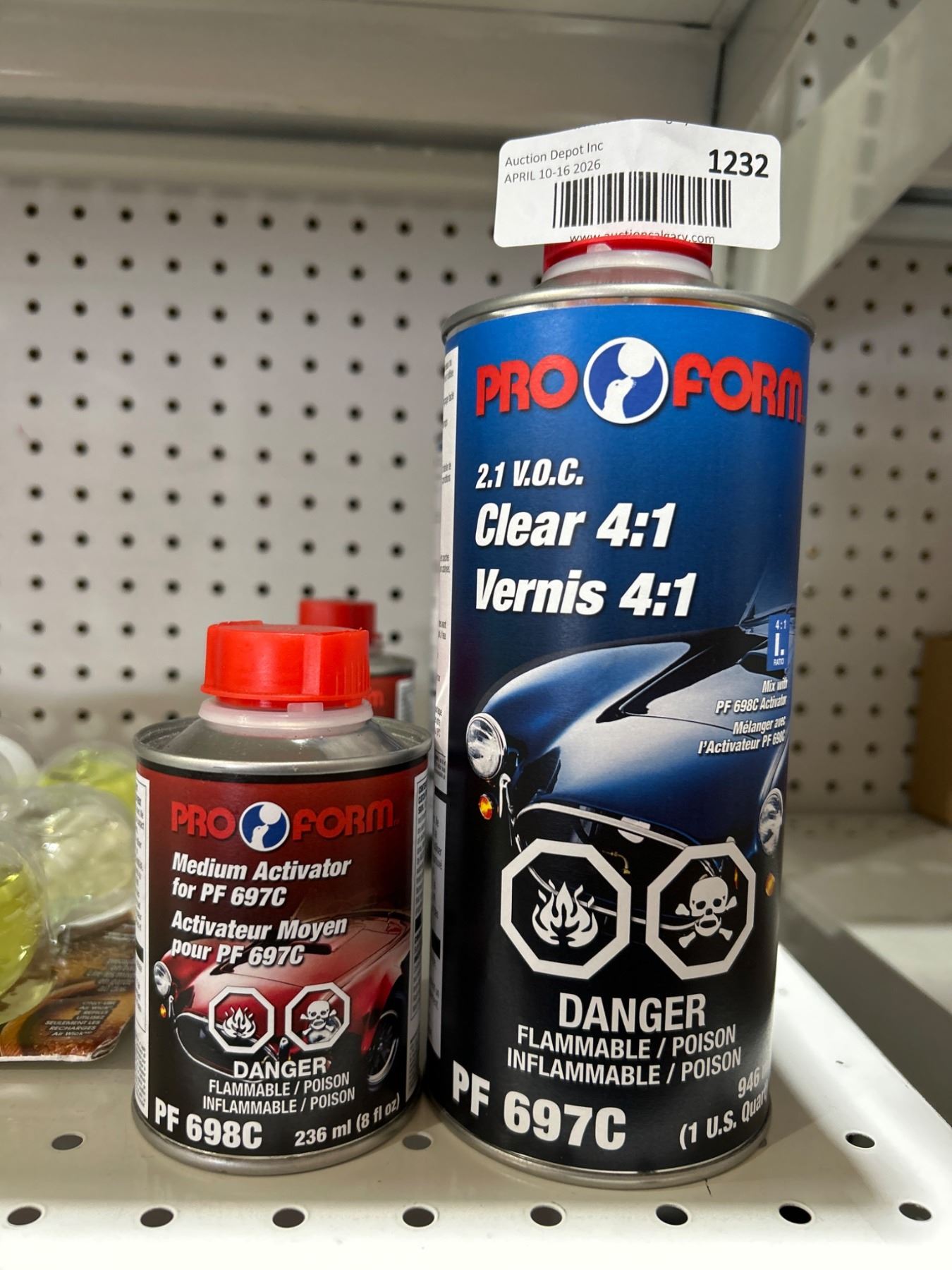 Lot 1233 Pro Form PF 697C Clear 4:1 and PF 698C Medium Activator, 1 Gallon and 296 mL