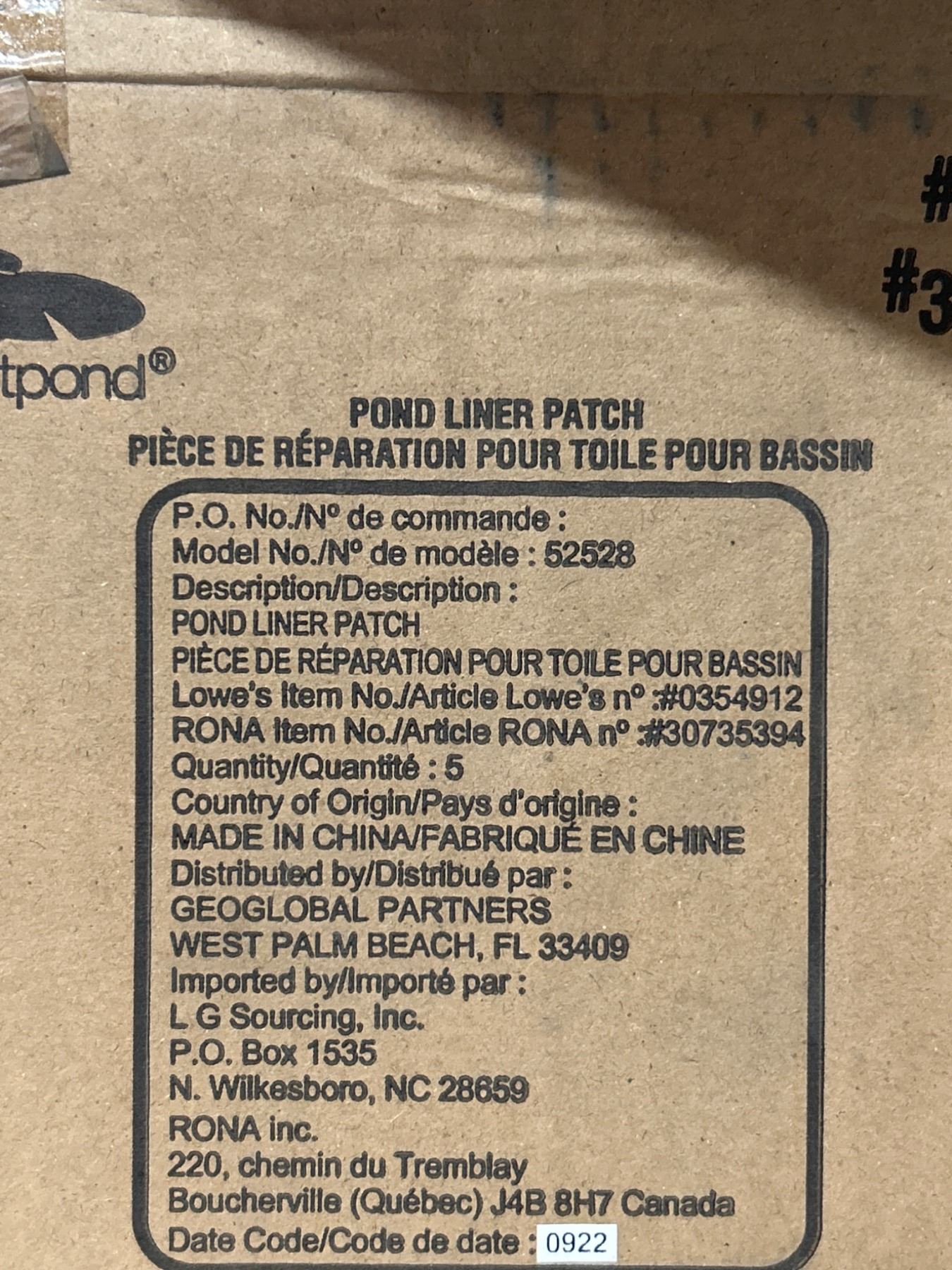 Lot 1237 Smartpond Pond Liner Patch, Model 55228, 6 in. x 18 in.