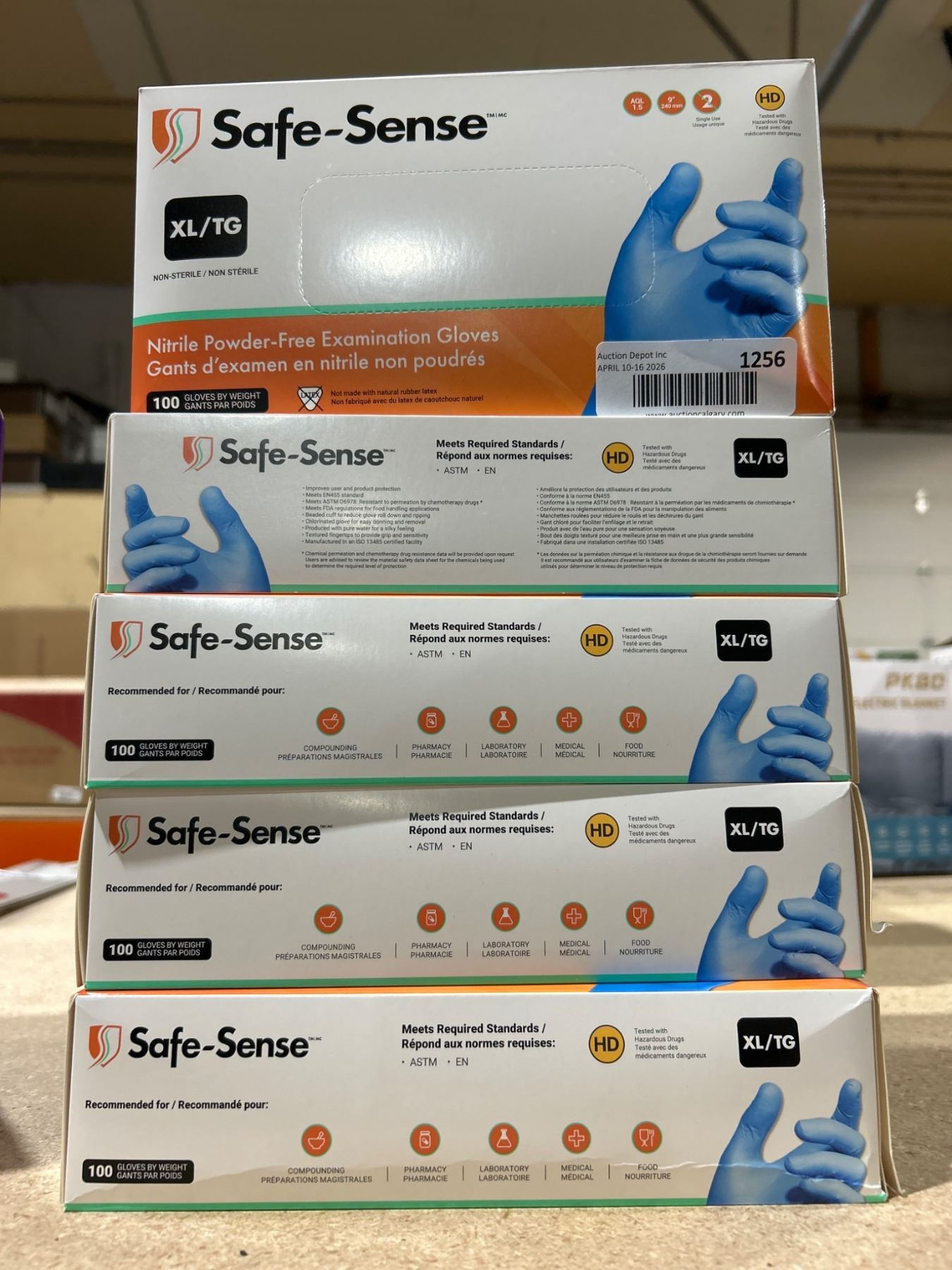 Lot 1257 Safe-Sense XL Nitrile Powder-Free Examination Gloves (100 Count, Lot of 4 Boxes )