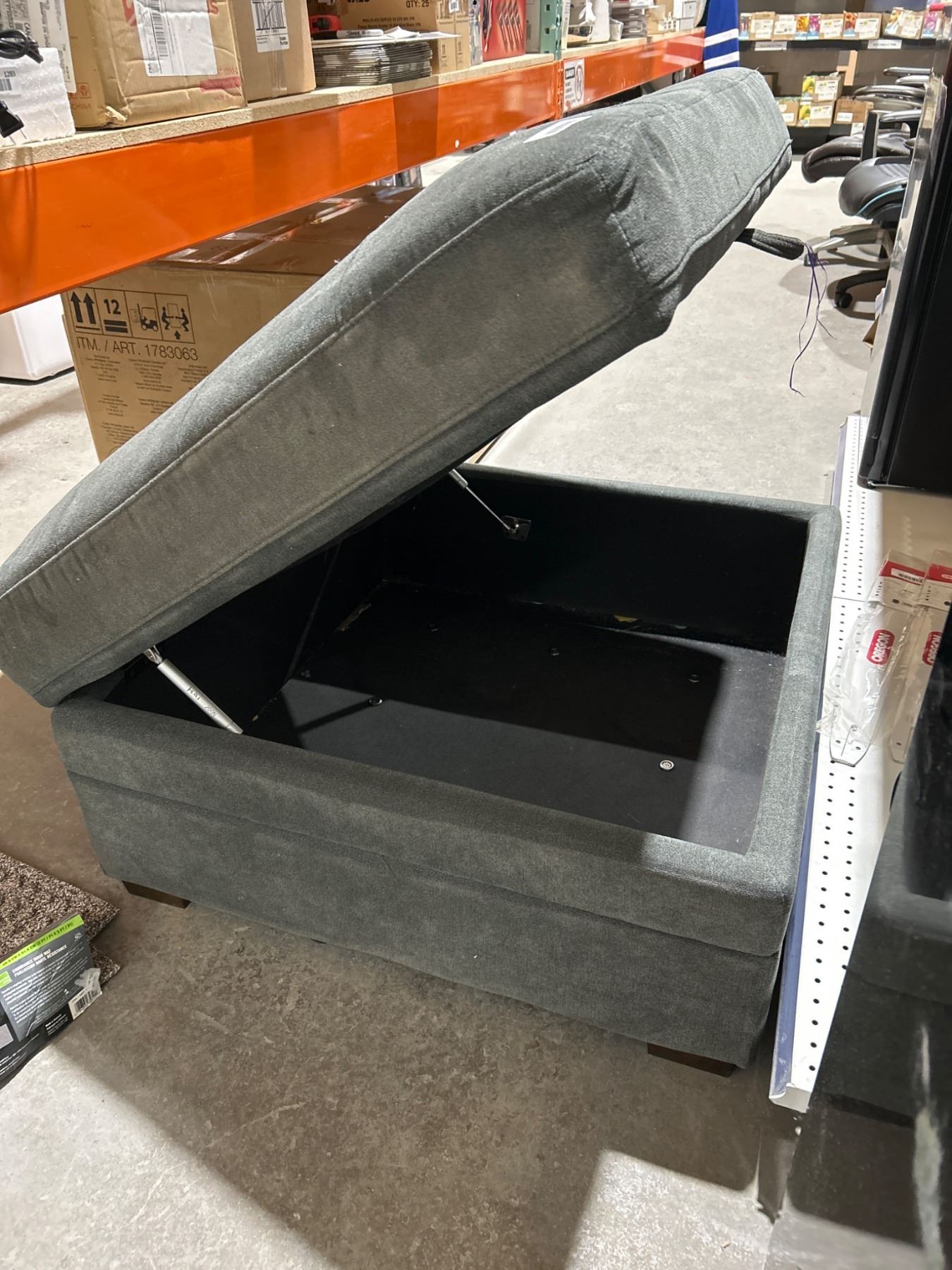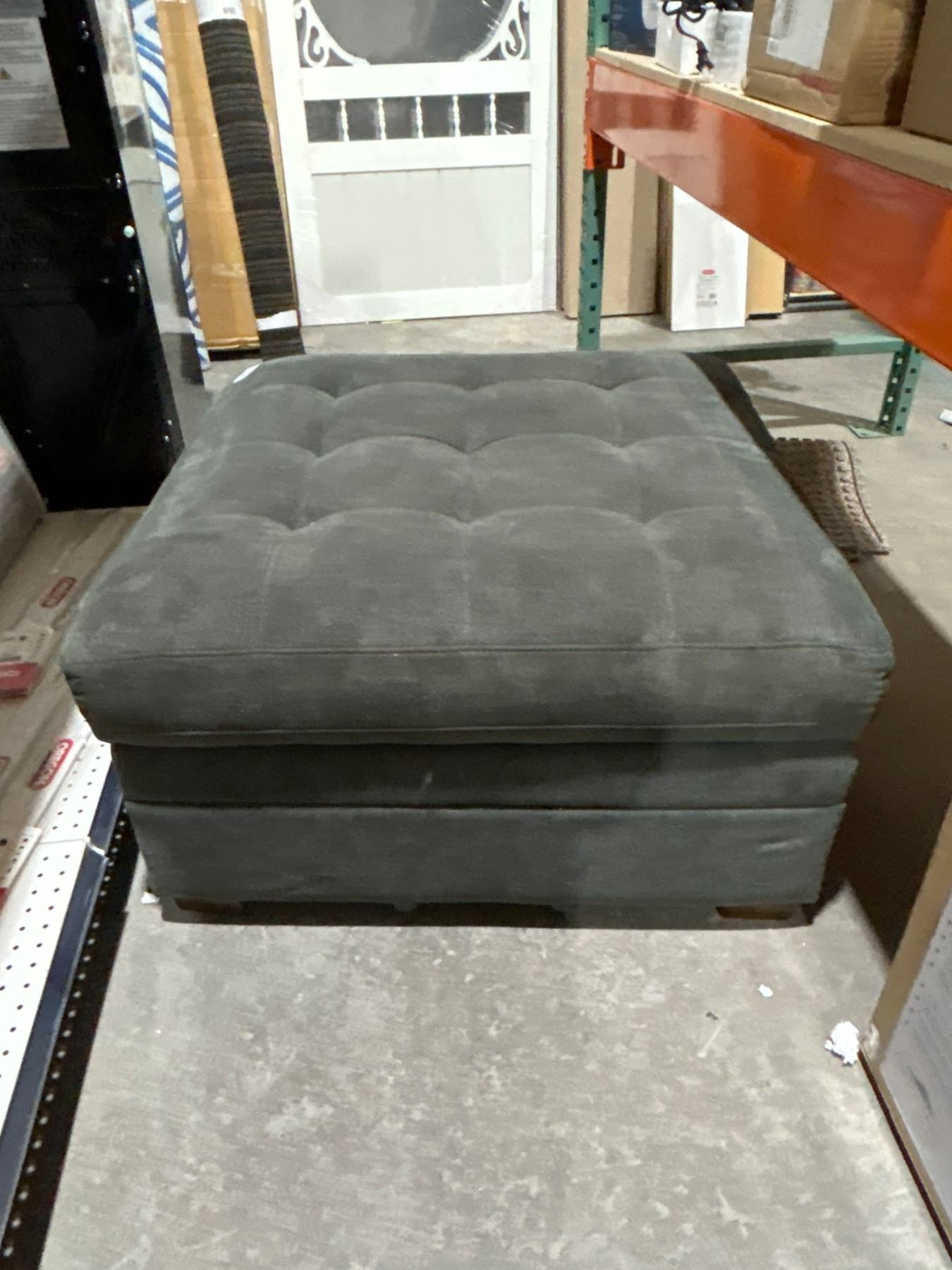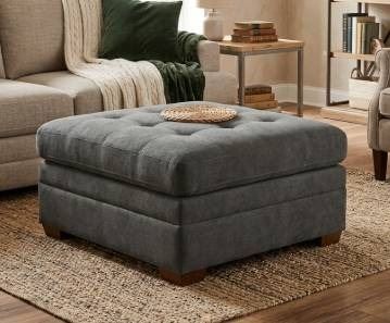 Gray Upholstered Ottoman with Storage, 3' x 3'
