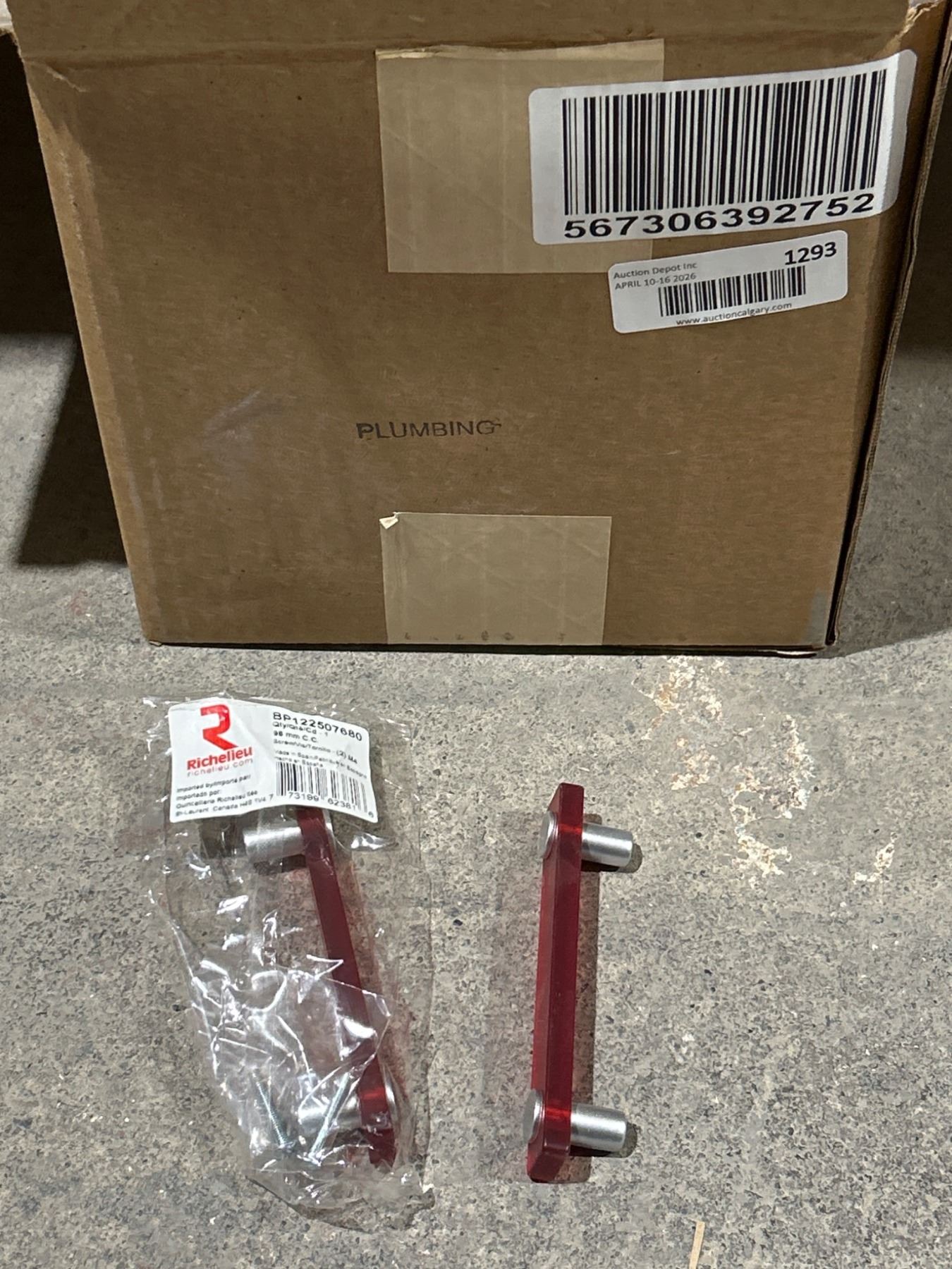 Lot 1293 Richelieu BP122507680 96 mm C-C Drawer Pull Handles, Red Finish, Lot of Multiple Units