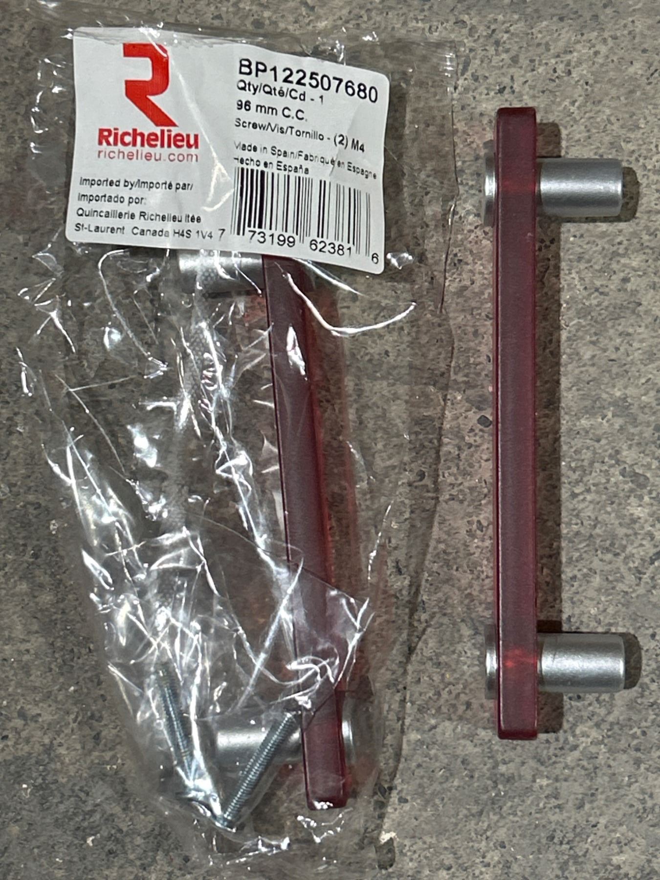 Richelieu BP122507680 96 mm C-C Drawer Pull Handles, Red Finish, Lot of Multiple Units