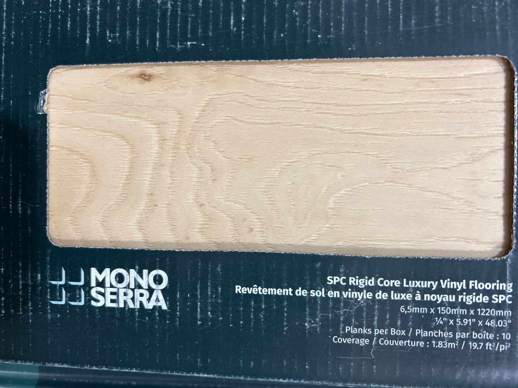 Lot 1297 Mono Serra SPC Rigid Core Luxury Vinyl Flooring, 6 boxes x 19.7 sq ft per boxÂ