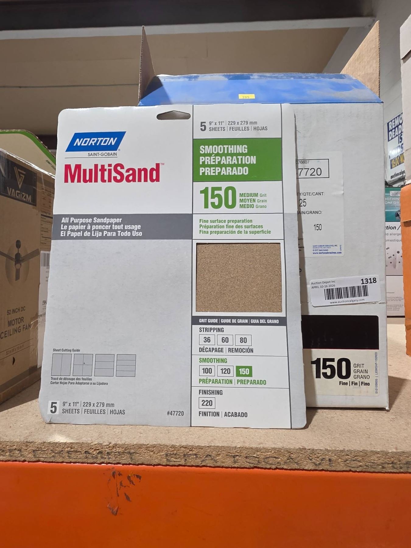 Lot 1318 Norton MultiSand All Purpose Sandpaper, 9 x 11 In, 150 Grit, 5 Sheets