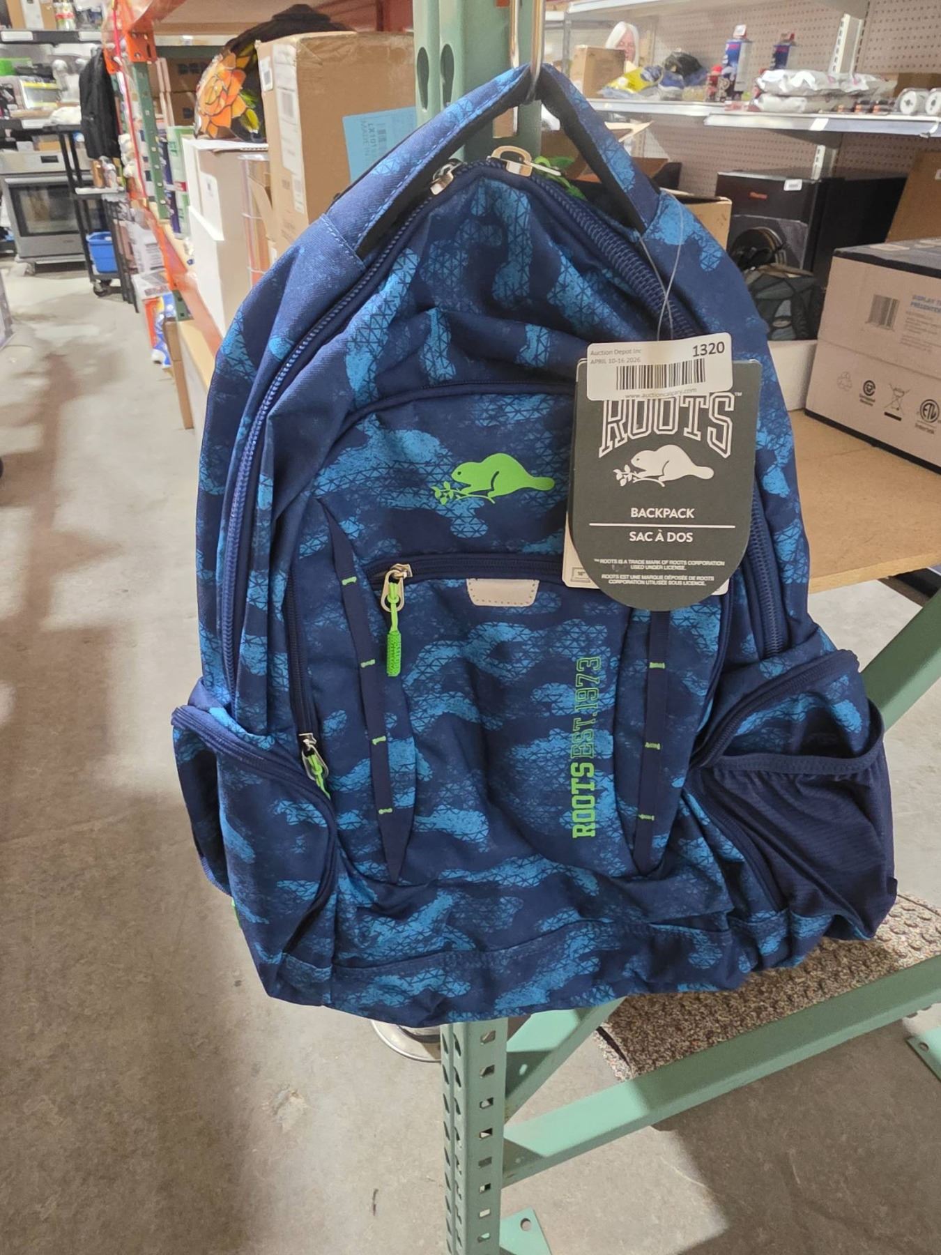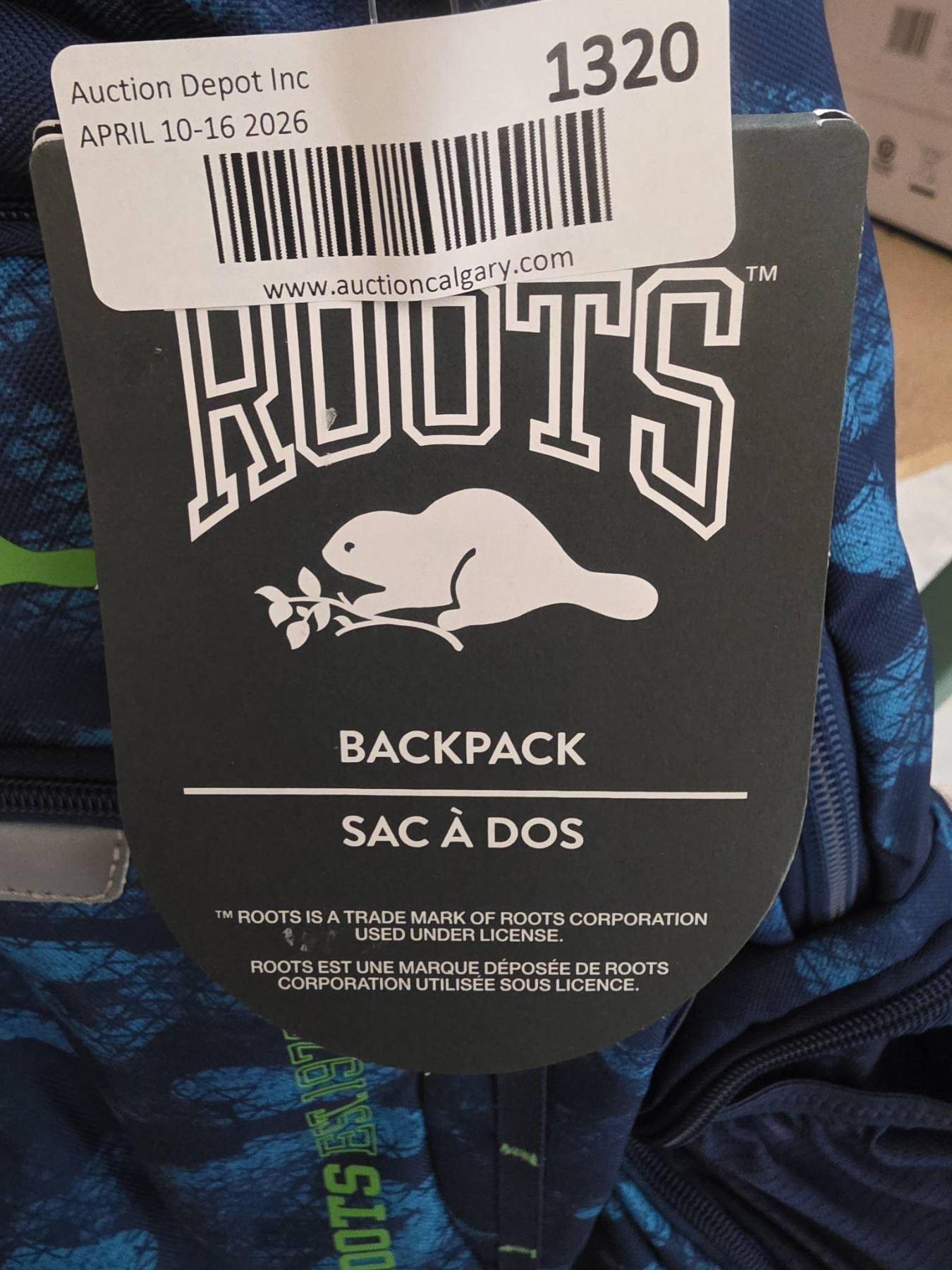Lot 1320 Roots Backpack with Blue Design and Multiple Compartments