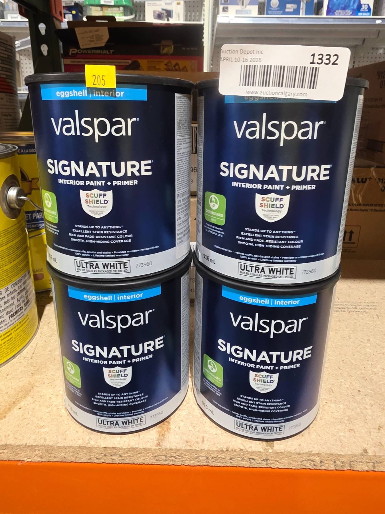 Lot 1332 Valspar Signature Interior Paint + Primer Eggshell Ultra White, 4 Cans