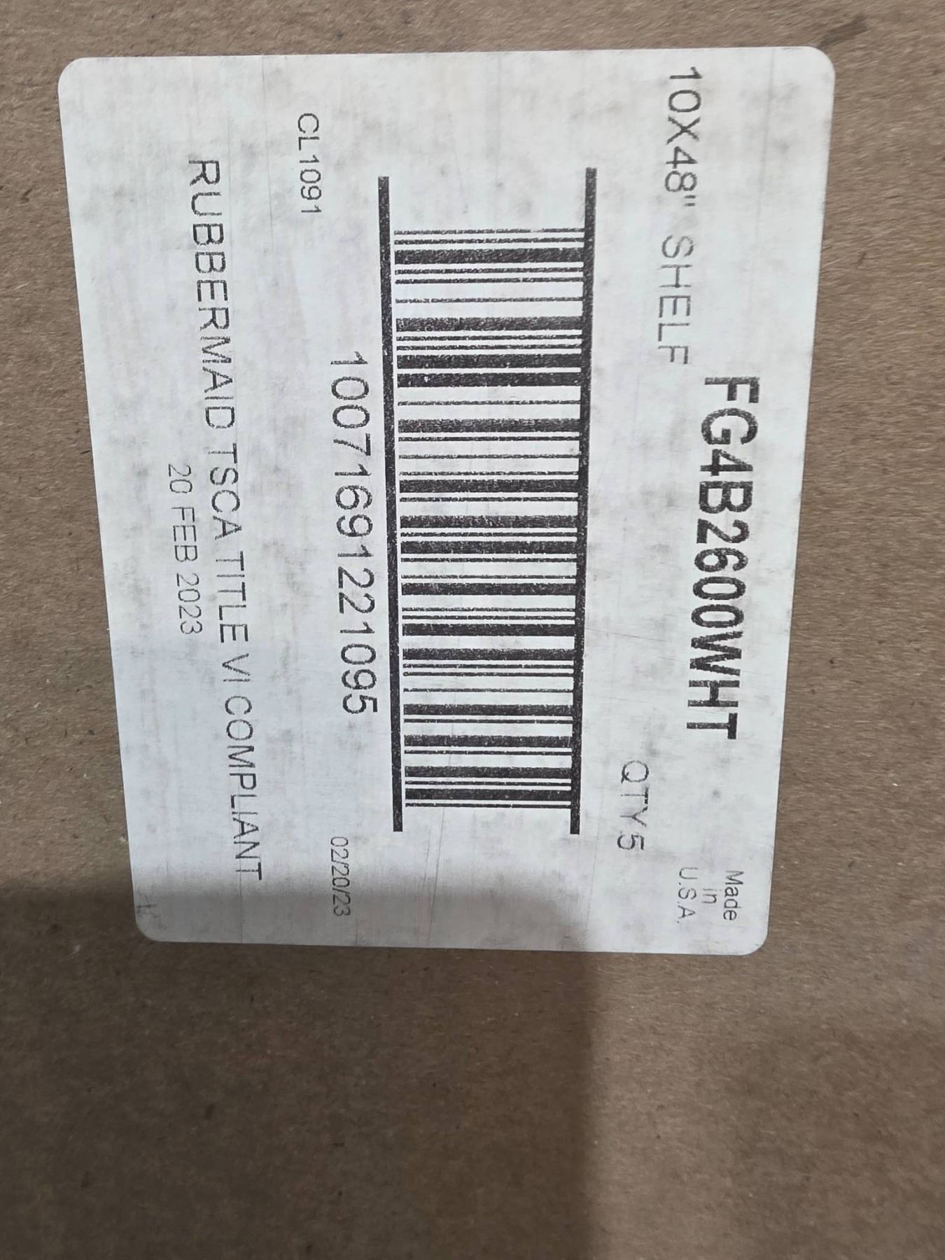 Lot 1401 Rubbermaid FG4B2600WHT 10x48 Inch Shelf, TSCA Title VI Compliant