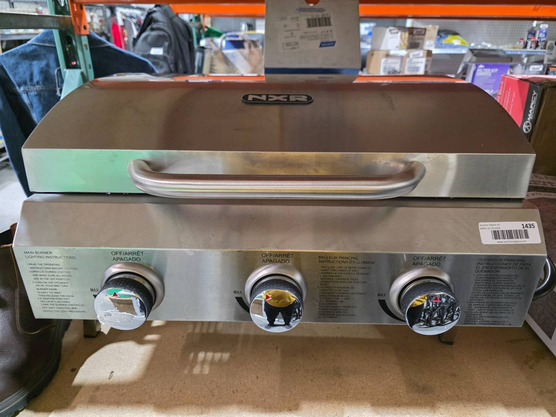 Lot 1435 NXR 3-Burner Stainless Steel Gas Grill with Lid and Controls