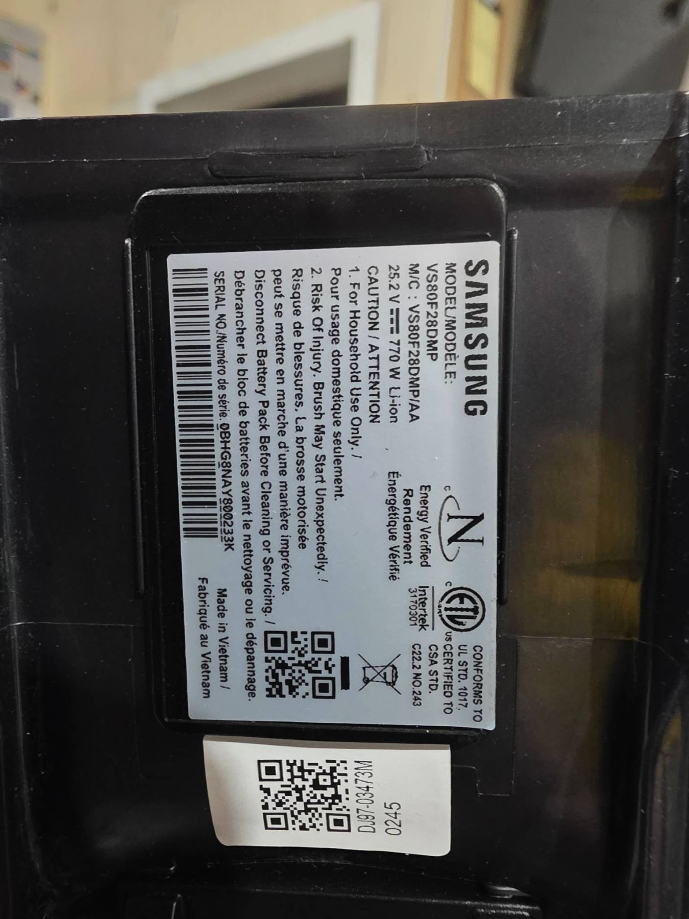 Lot 1457 Samsung Jet VS20A95923W/AA Cordless Stick Vacuum Cleaner with All-in-One Clean System