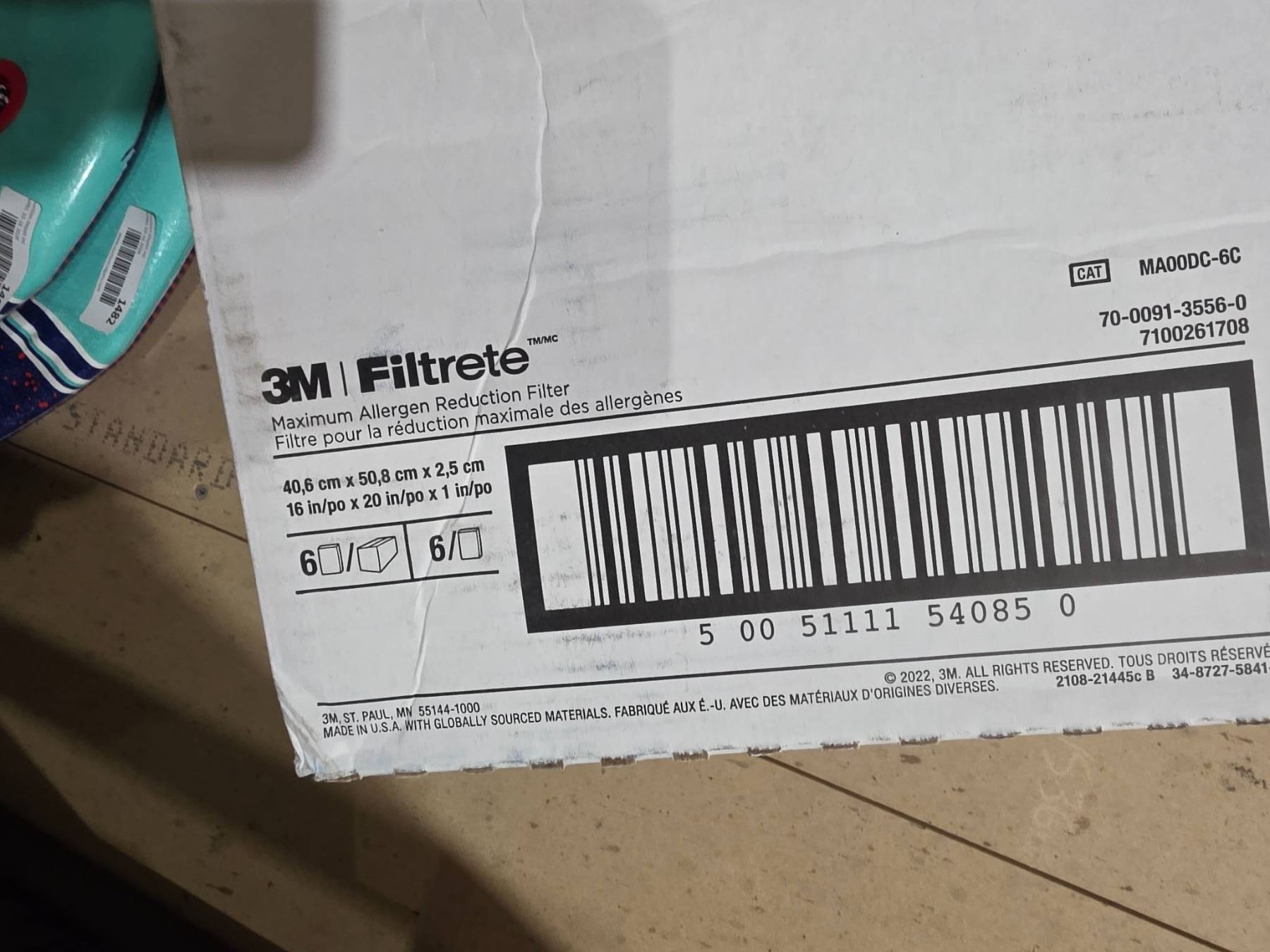 Lot 1461 Pack of 6 - 3M Filtrete 16x20x1 Air Filter Model Number 1000D-6C