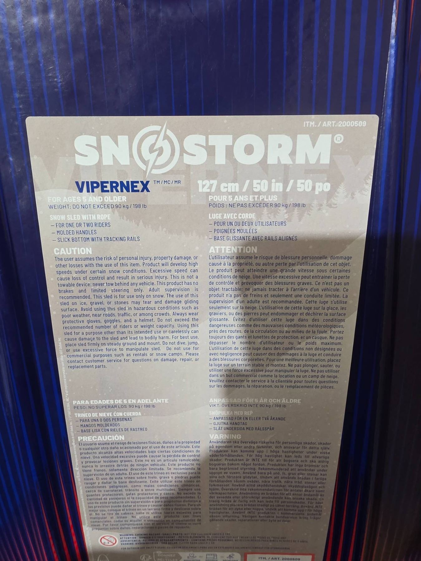 Lot 1482 Sno Storm Vipernex Snow Sled, 127 cm, Dual Grip Handles