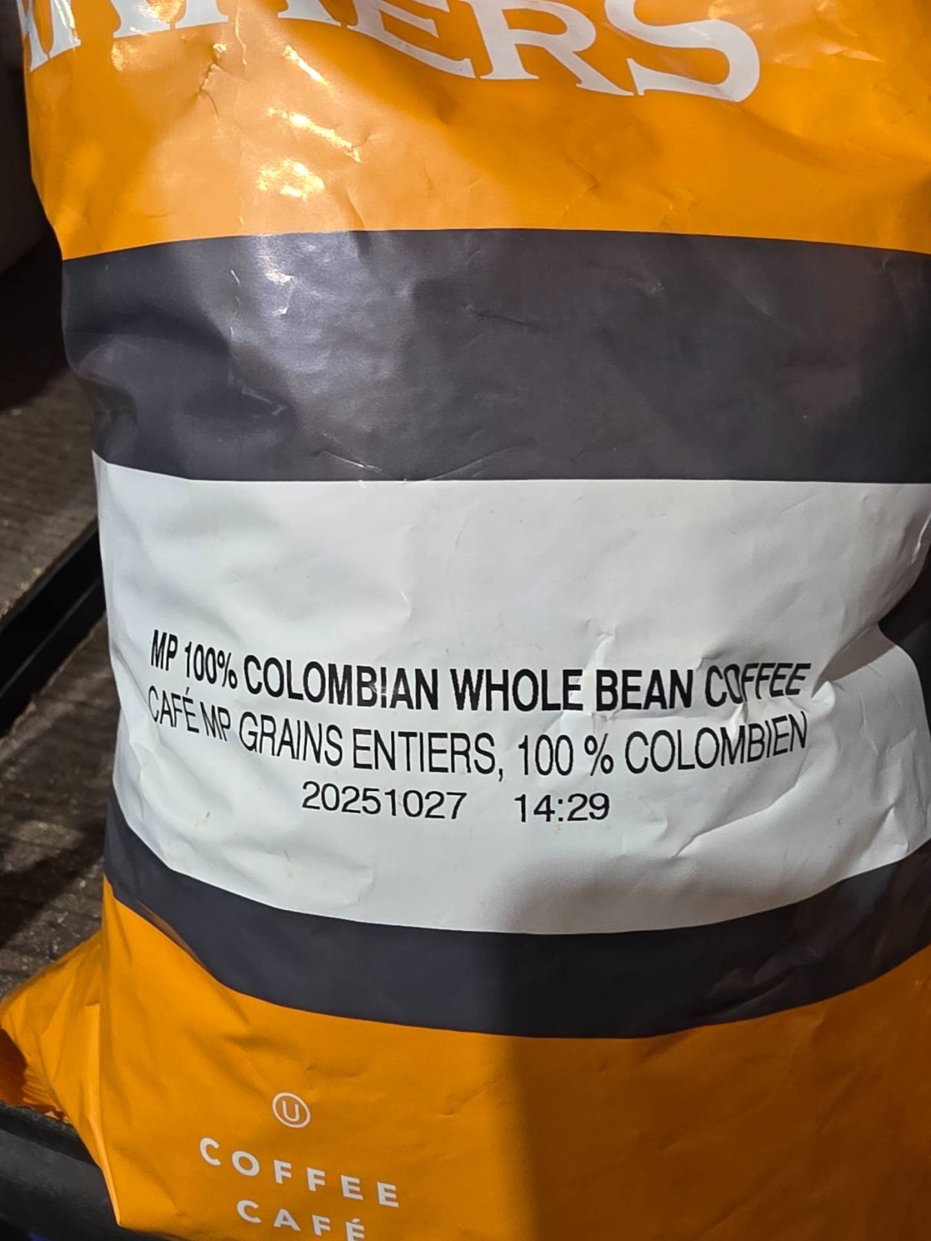 Lot 1553 Mother Parkers MP 100 Percent Colombian Whole Bean Coffee 2- 2 Lb Bags