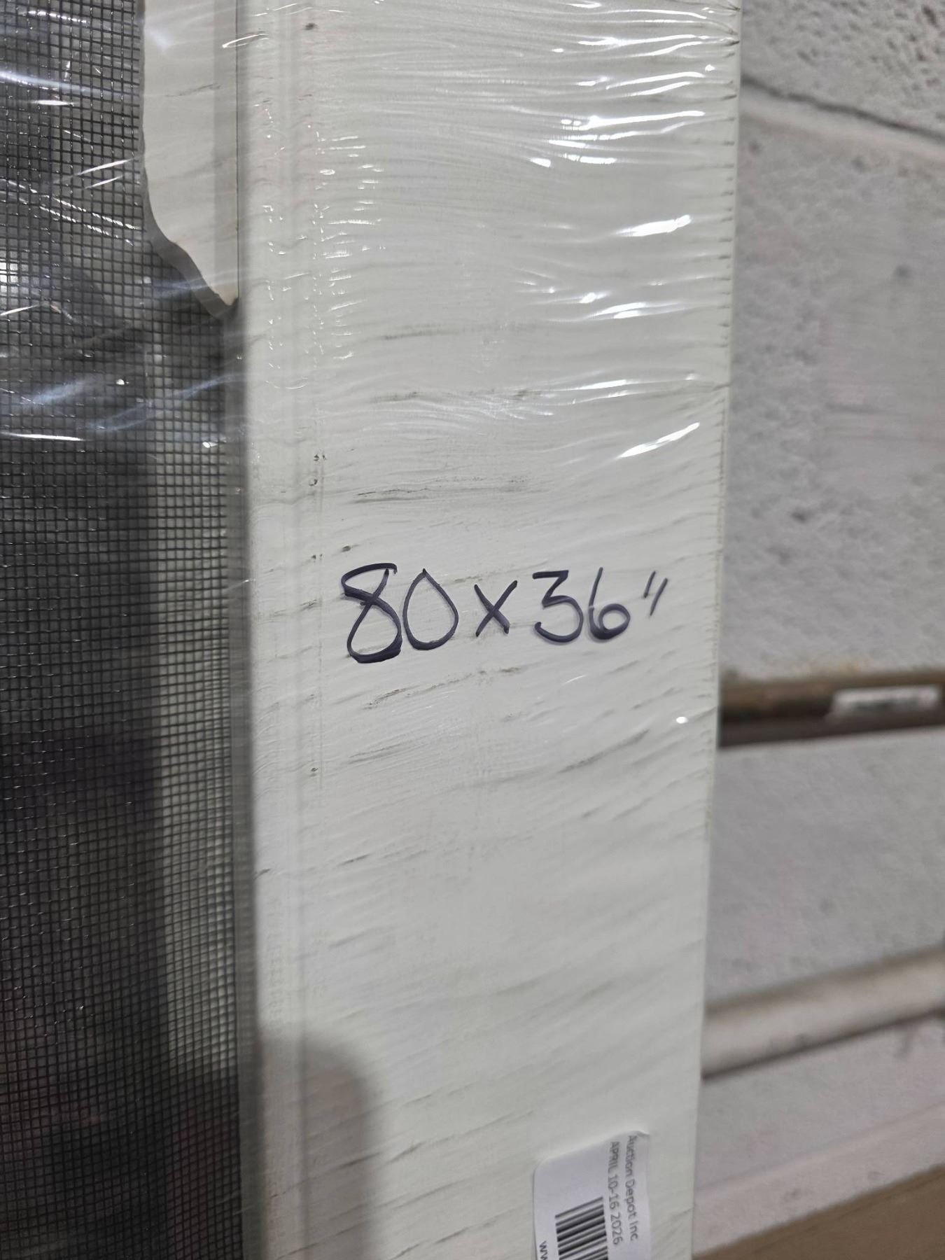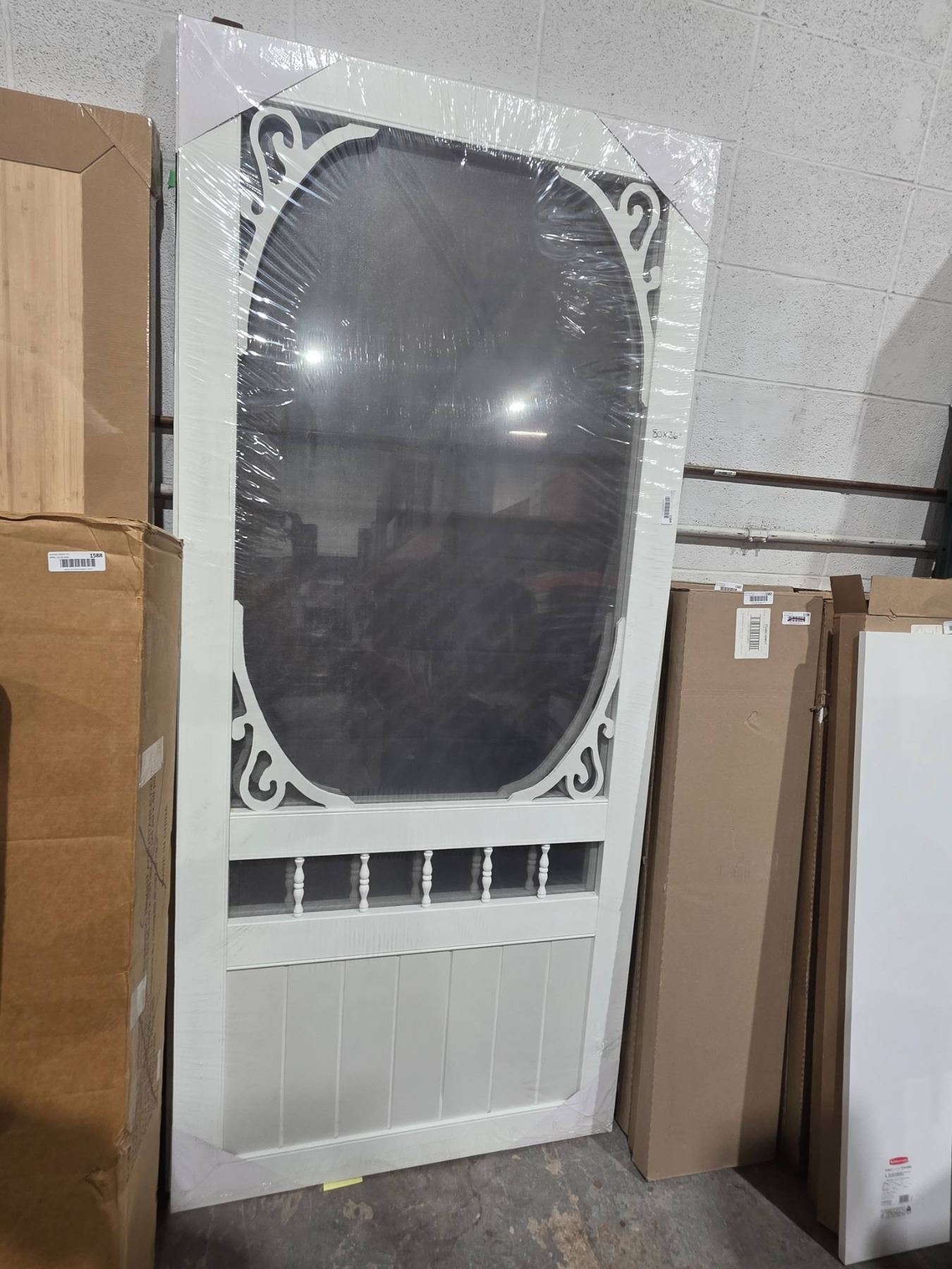 Lot 1585 80×36 Inch White Wooden Screen Door with Decorative Frame