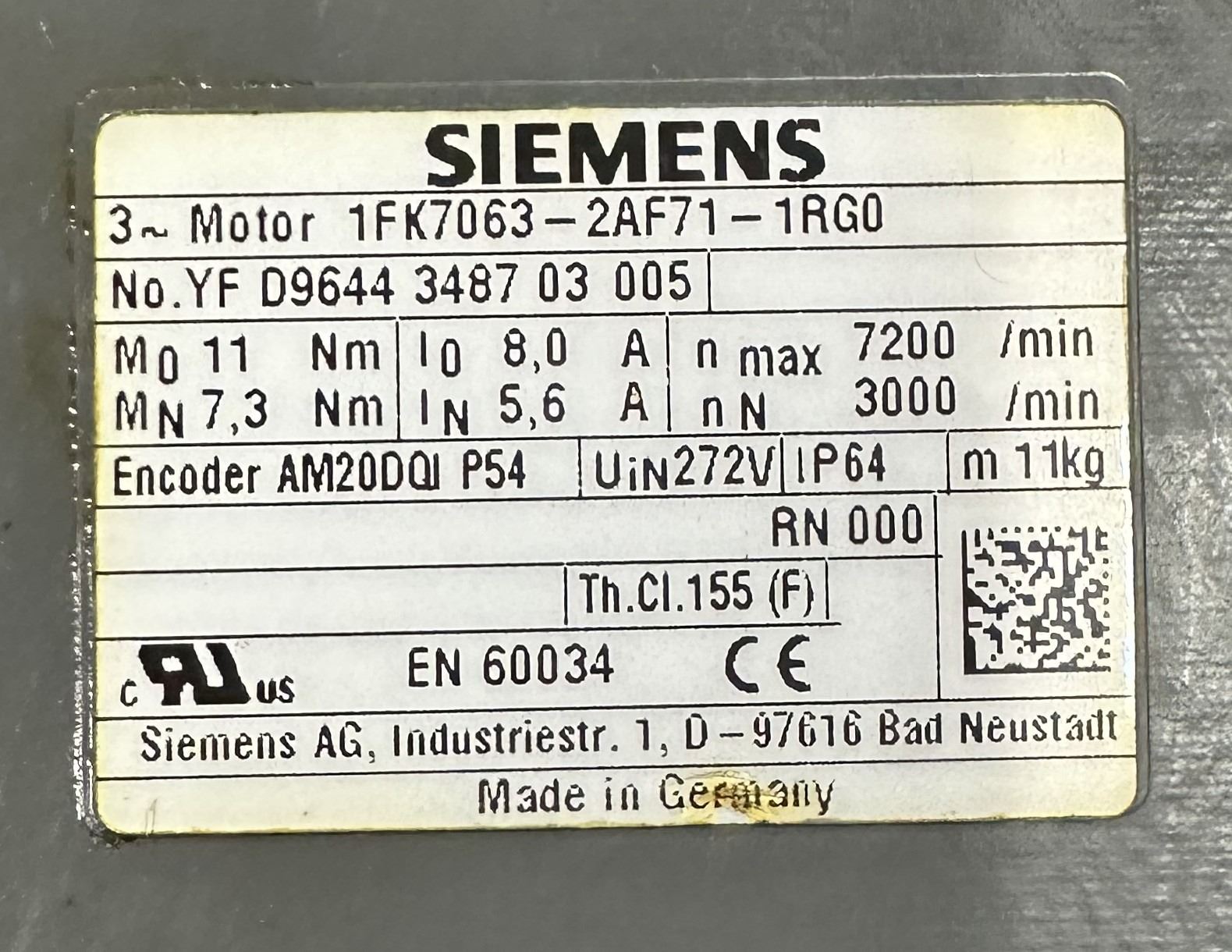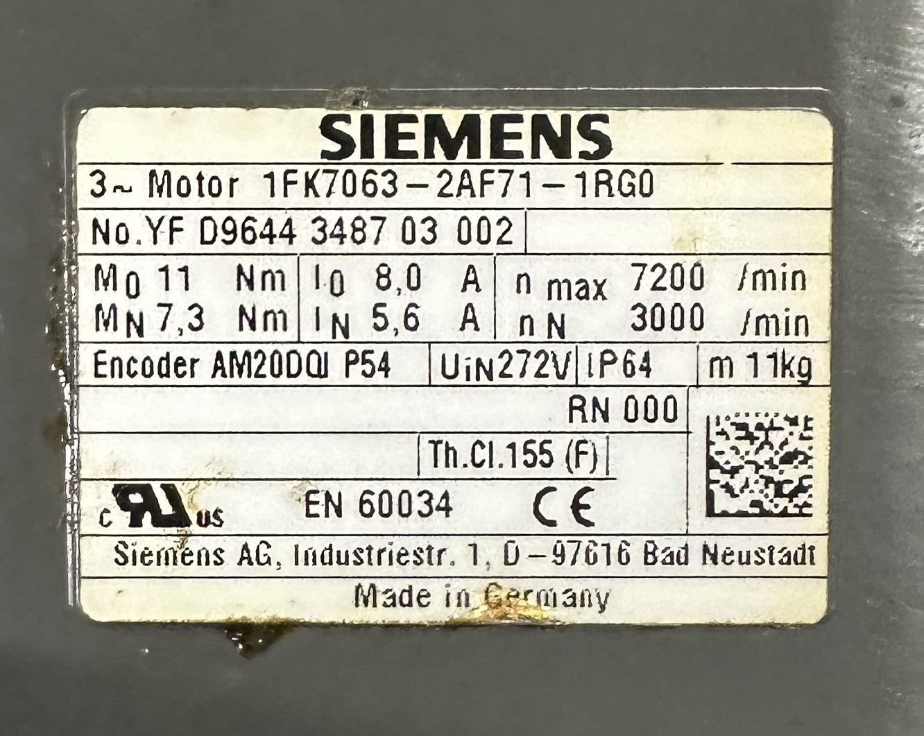 Lot 832 (2) Siemens #1FK7063-2AF71-1RG0 3~Motors