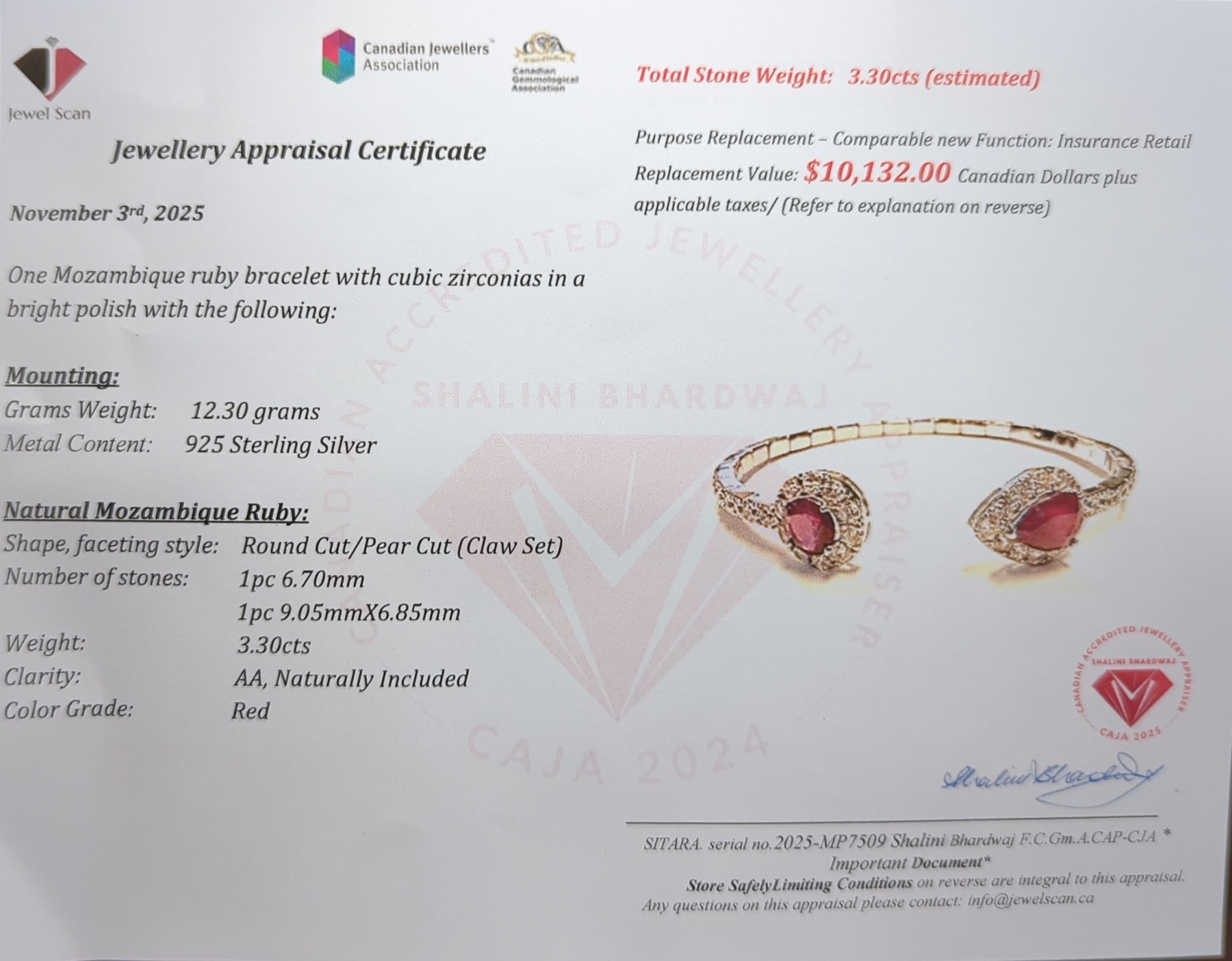 Silver Ruby gemstone Bracelet 12.3 ct Certified Value ($10,132 Appraisal)