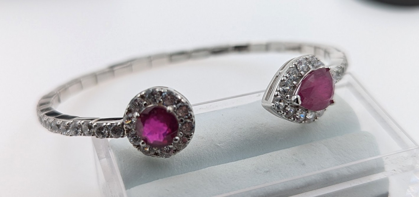Lot 10 Silver Ruby gemstone Bracelet 12.3 ct Certified Value ($10,132 Appraisal)