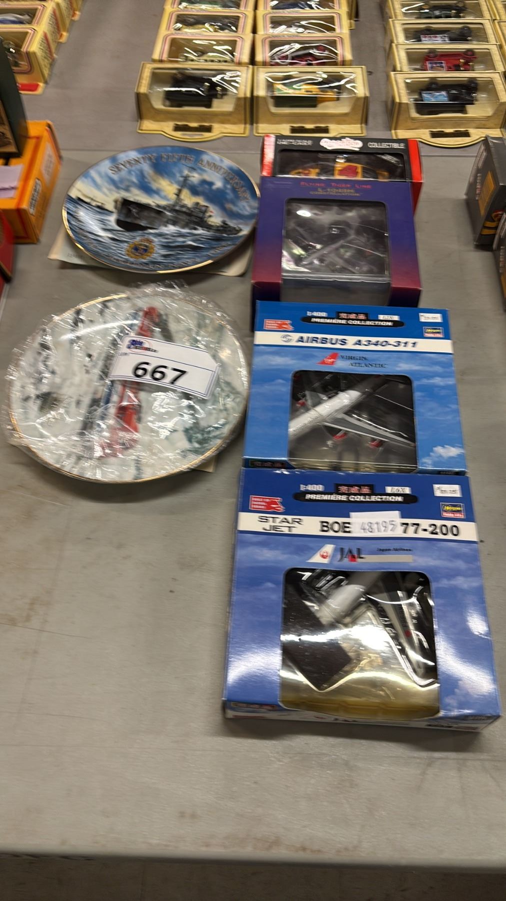 Lot 667 (4) ASSORTED DIECAST SCALE MODEL VEHICLES & (2) DECORATIVE COLLECTOR PLATES