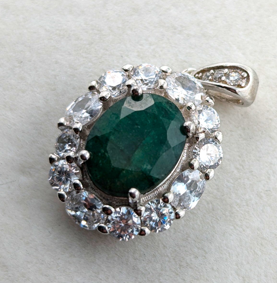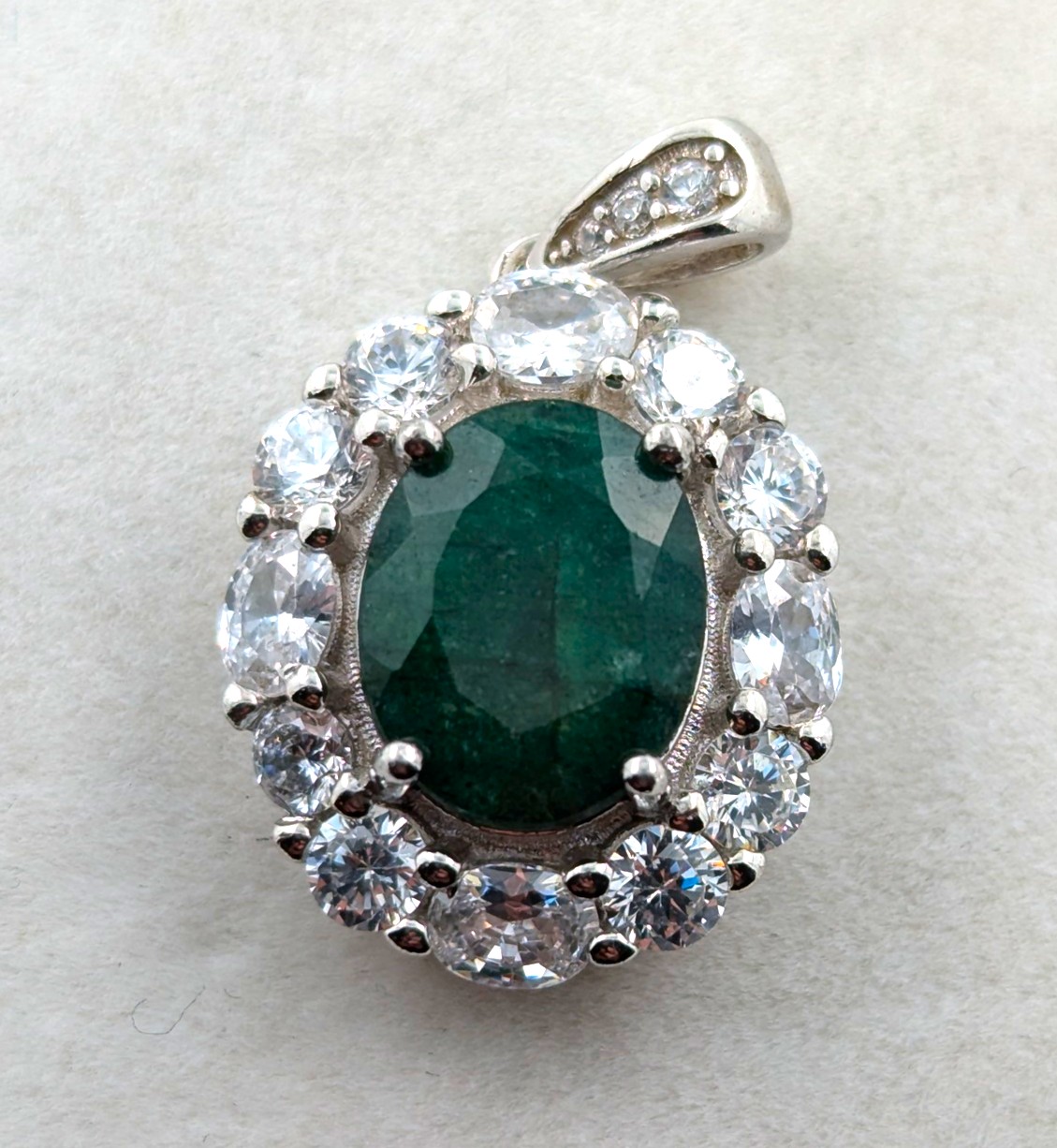 Lot 18 Emerald gemstone Pendant 3.6 ct Certified Silver ($6,252 Appraisal)