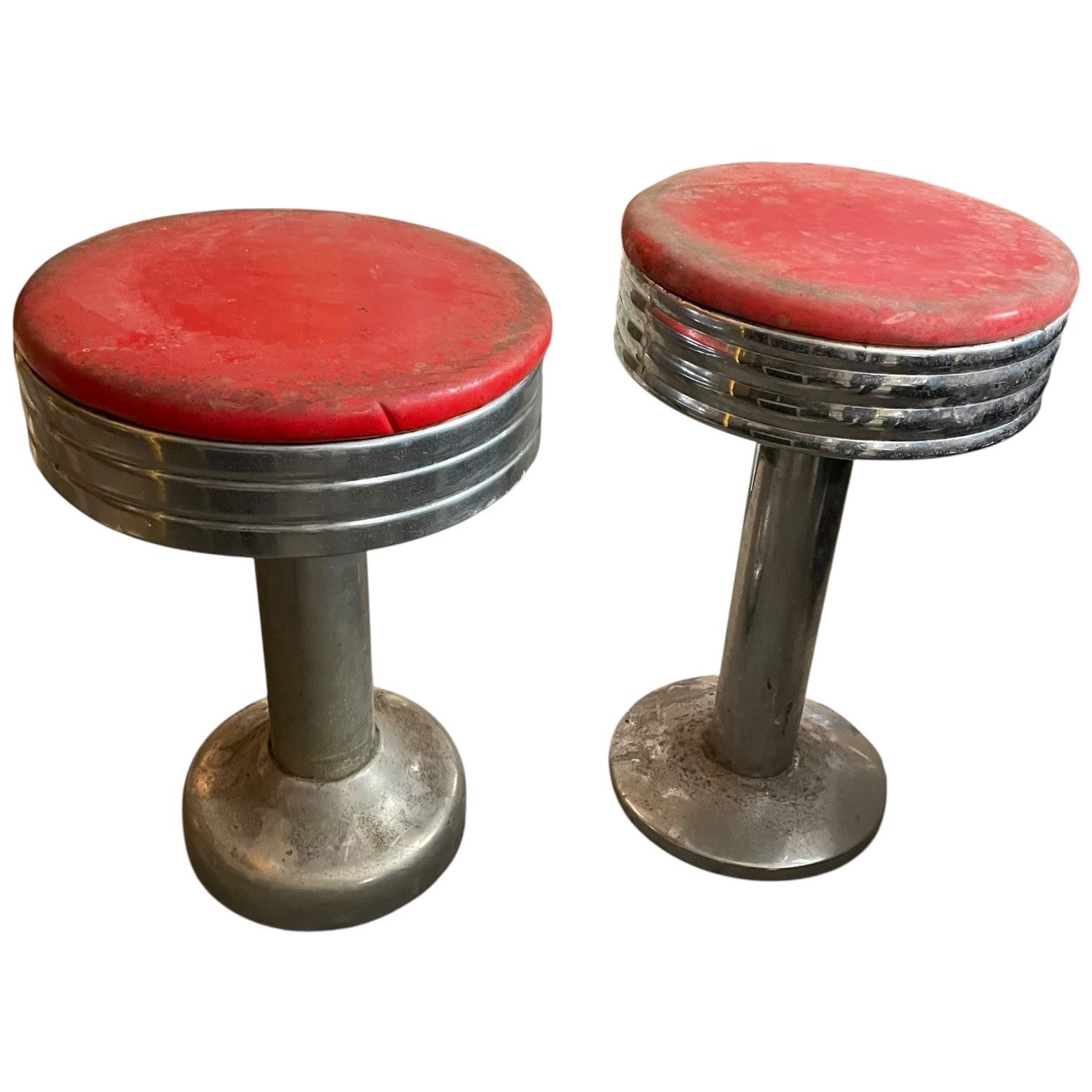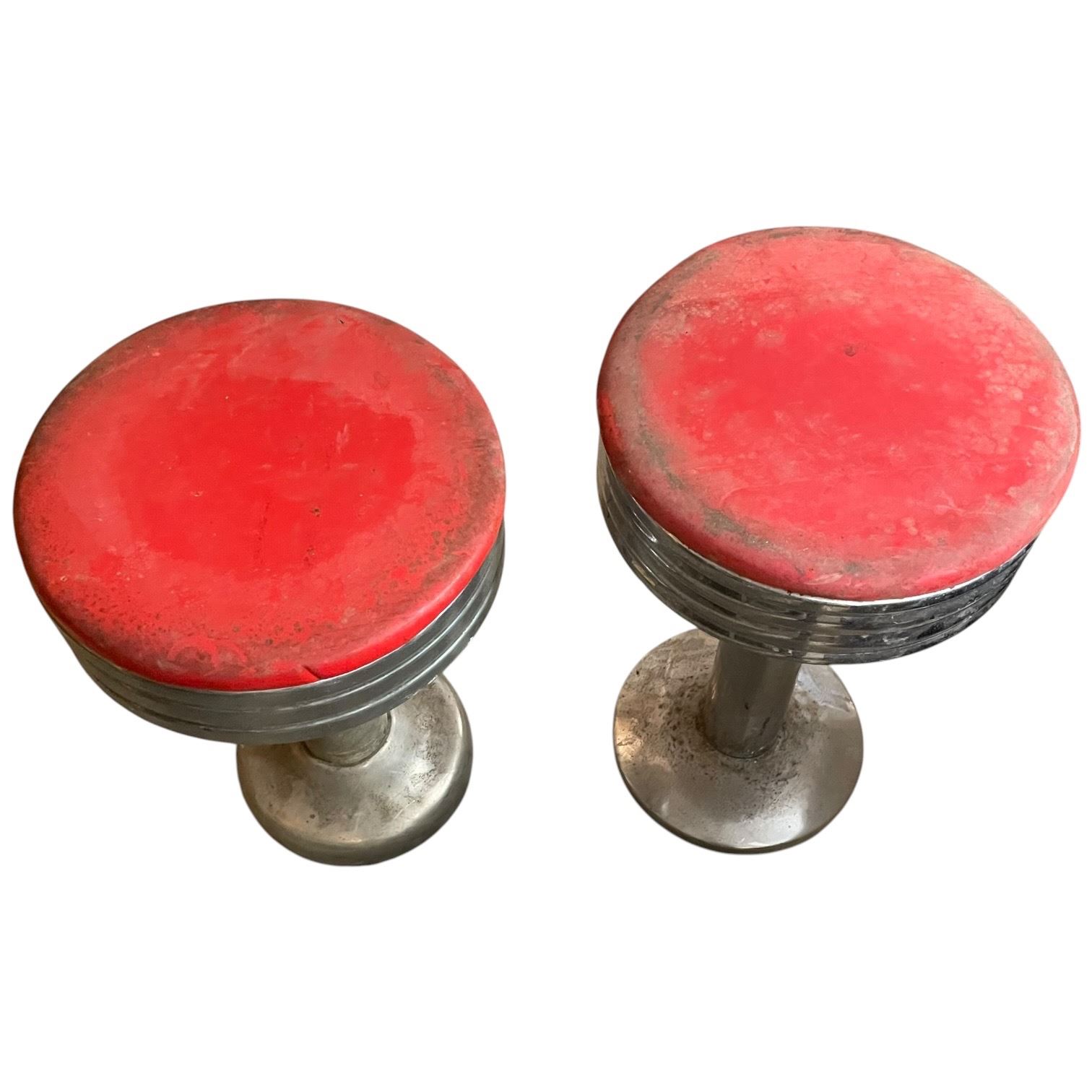 2 Retro Soda Shop Red Vinyl and Chome Stools 12x12x20"