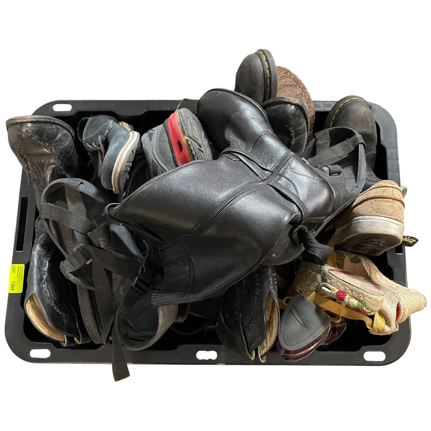 Lot 1364 Bin of Shoes and Boots: Cowboys, Spikes, Runners, Heels and More