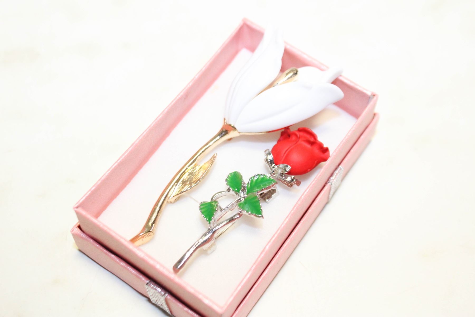 Lot 3429 NEW 2 FLOWER BROOCHES 2”X1.3”