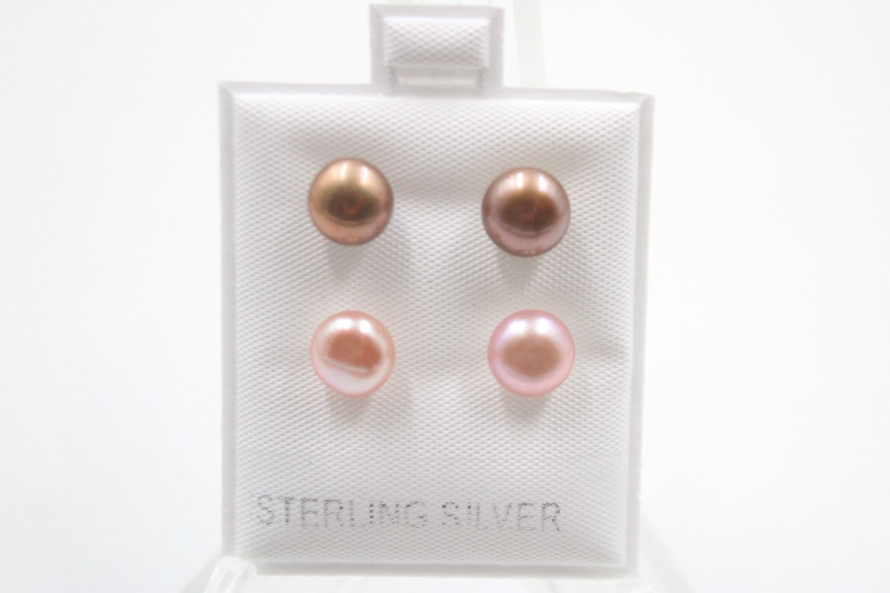 .925 STERLING SILVER/ 7.5-8MM /BROWN & LAVENDER PINKISH /2PAIRS