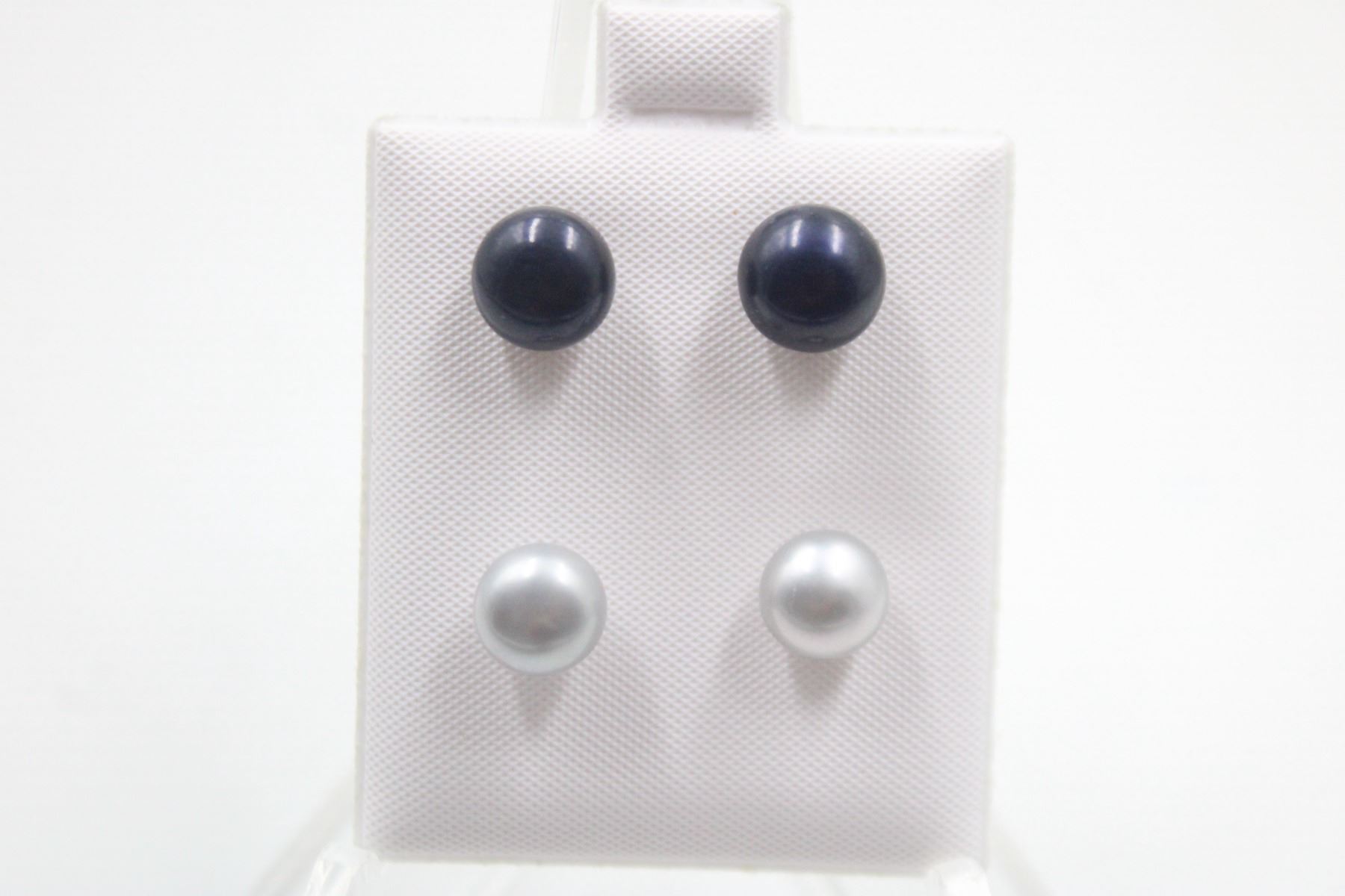 .925 STERLING SILVER/ 7.5-8MM /GRAY & BLACK /2PAIRS