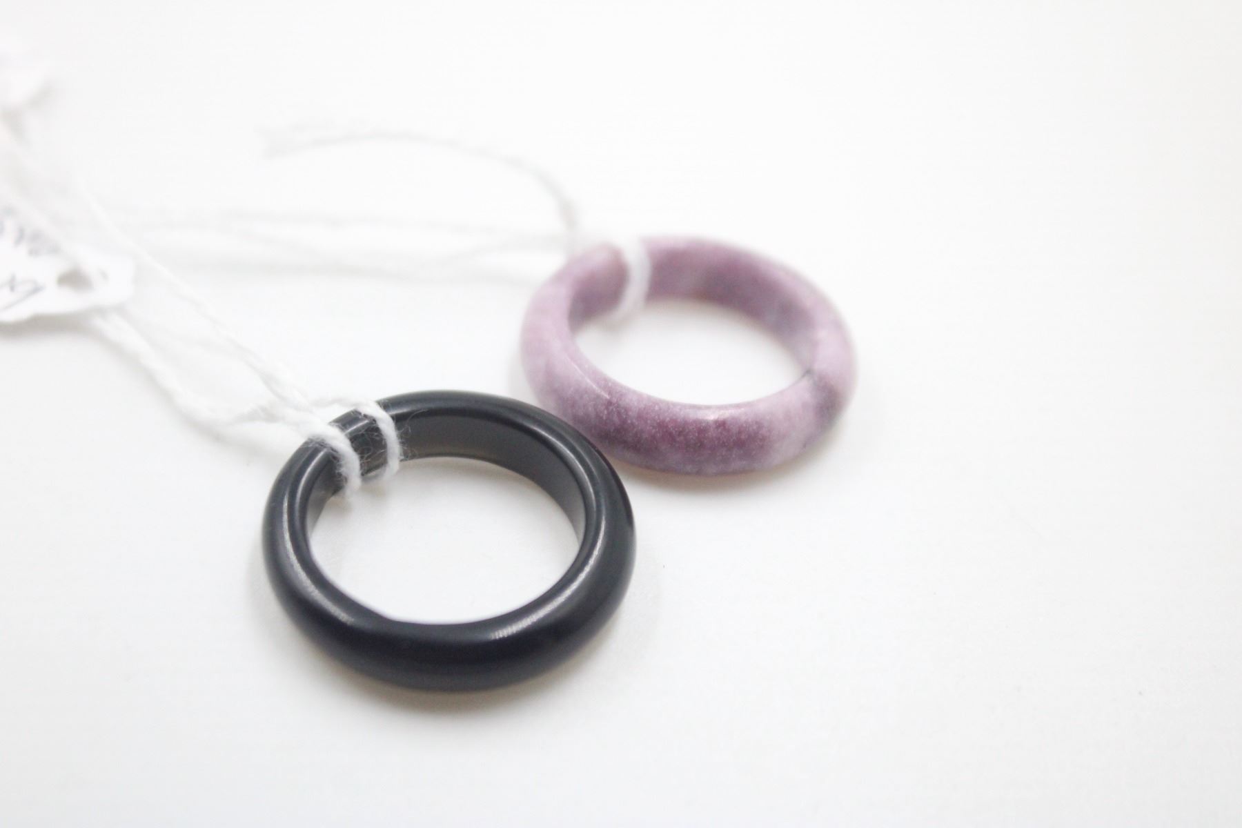 Lot 3497 #253- NATURAL PURPLE JADE & BLACK ONYX RING 2 PCS